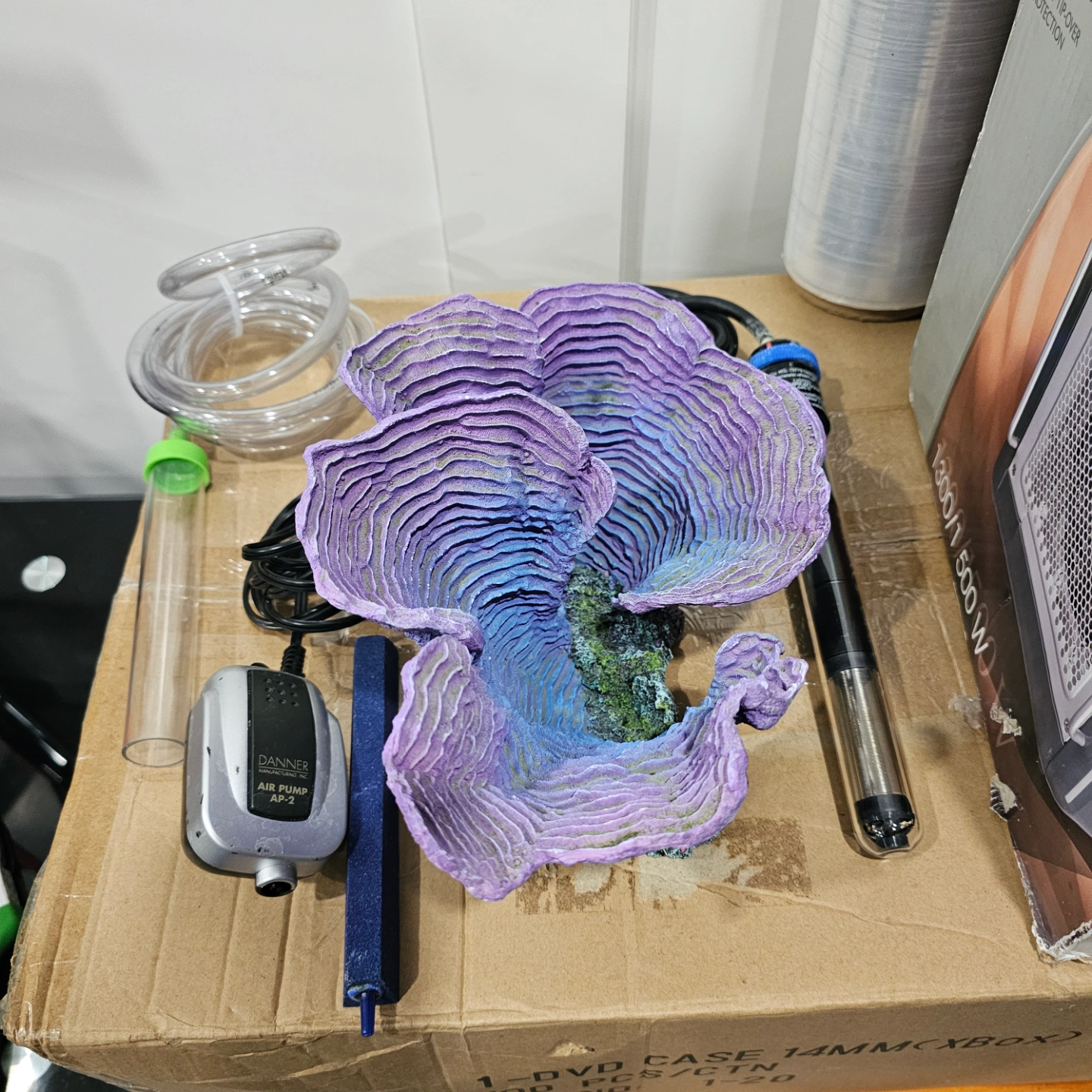 65Aquarium 8 gallons LED with extras Comes with Aquarium heater 50 w Air pump AP-2 with hose and one bubble air stone. Purple aquarium decoration fake plant Air pump manual siphon water changer. Led lights on the top cover. There is no water filter. 15" height 12 5/8" width 14 3/8" length Pick up in Newmarket, Ontario. If it's posted it's available.