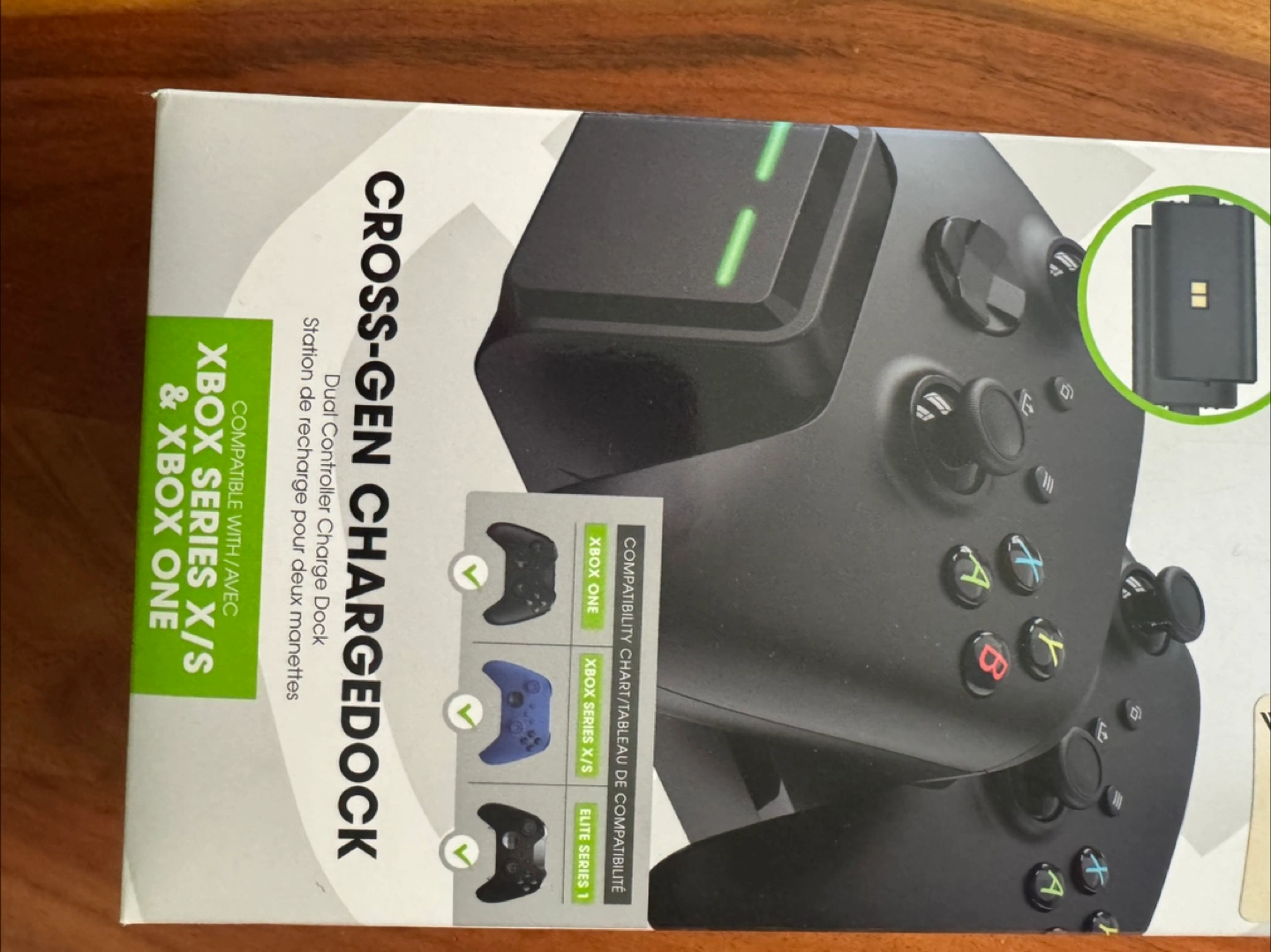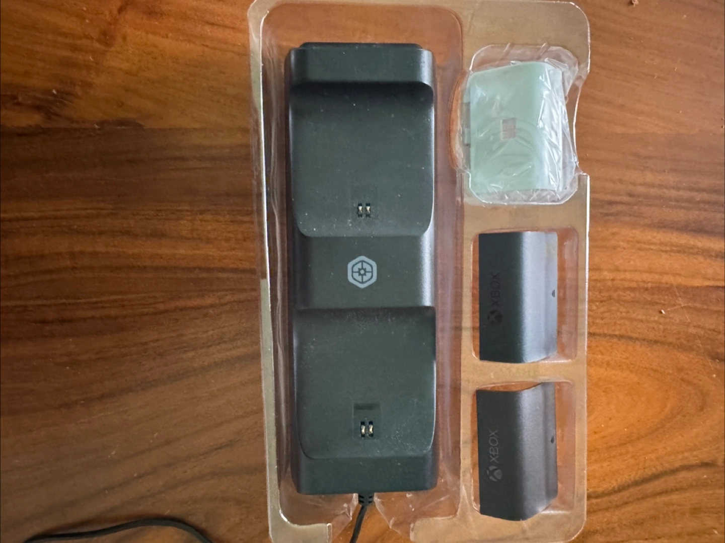 Charging dock with two battery packs. Includes an extra battery pack still in the original packaging. Perfect for a more organized gaming setup.