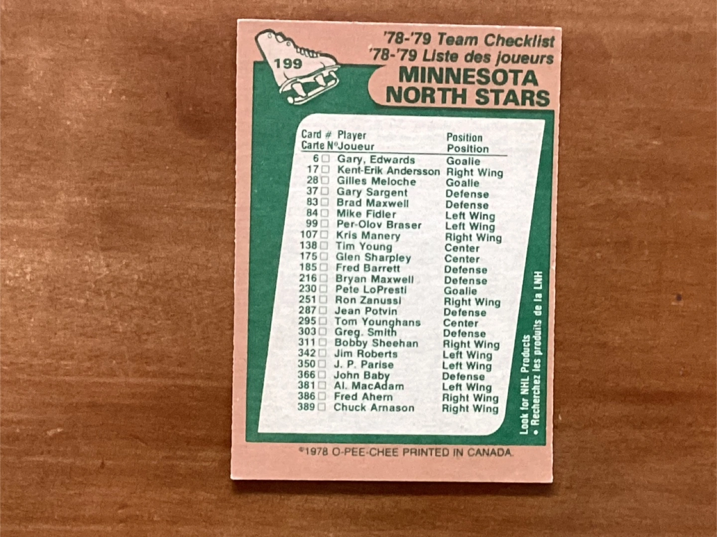 1978-79 OPC MINNESOTA NORTH STARS CHECKLIST Card 199
