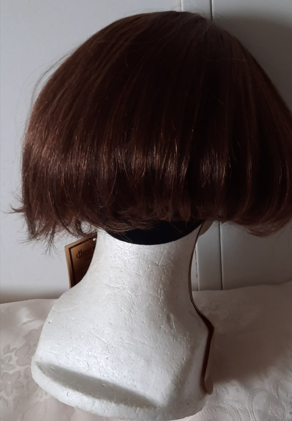 Dark brown hair with a blunt cut. Human hair with attached headband. A great way to change your look without commitment.