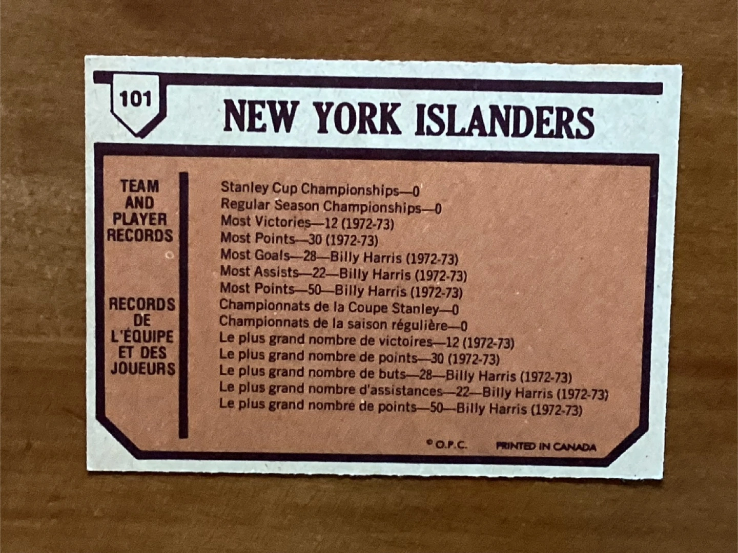1973-74 OPC NEW YORK ISLANDERS RECORDS Card #101