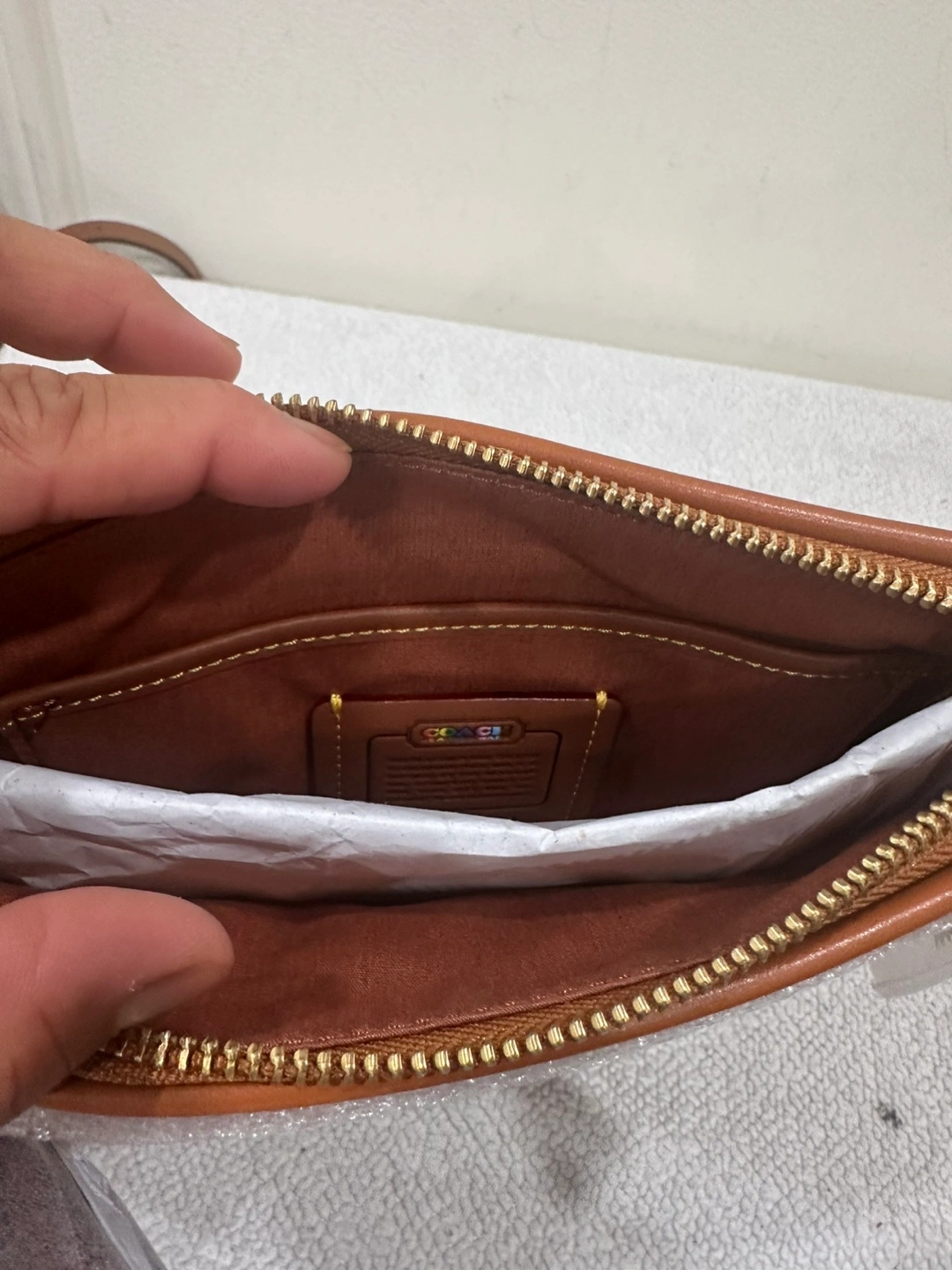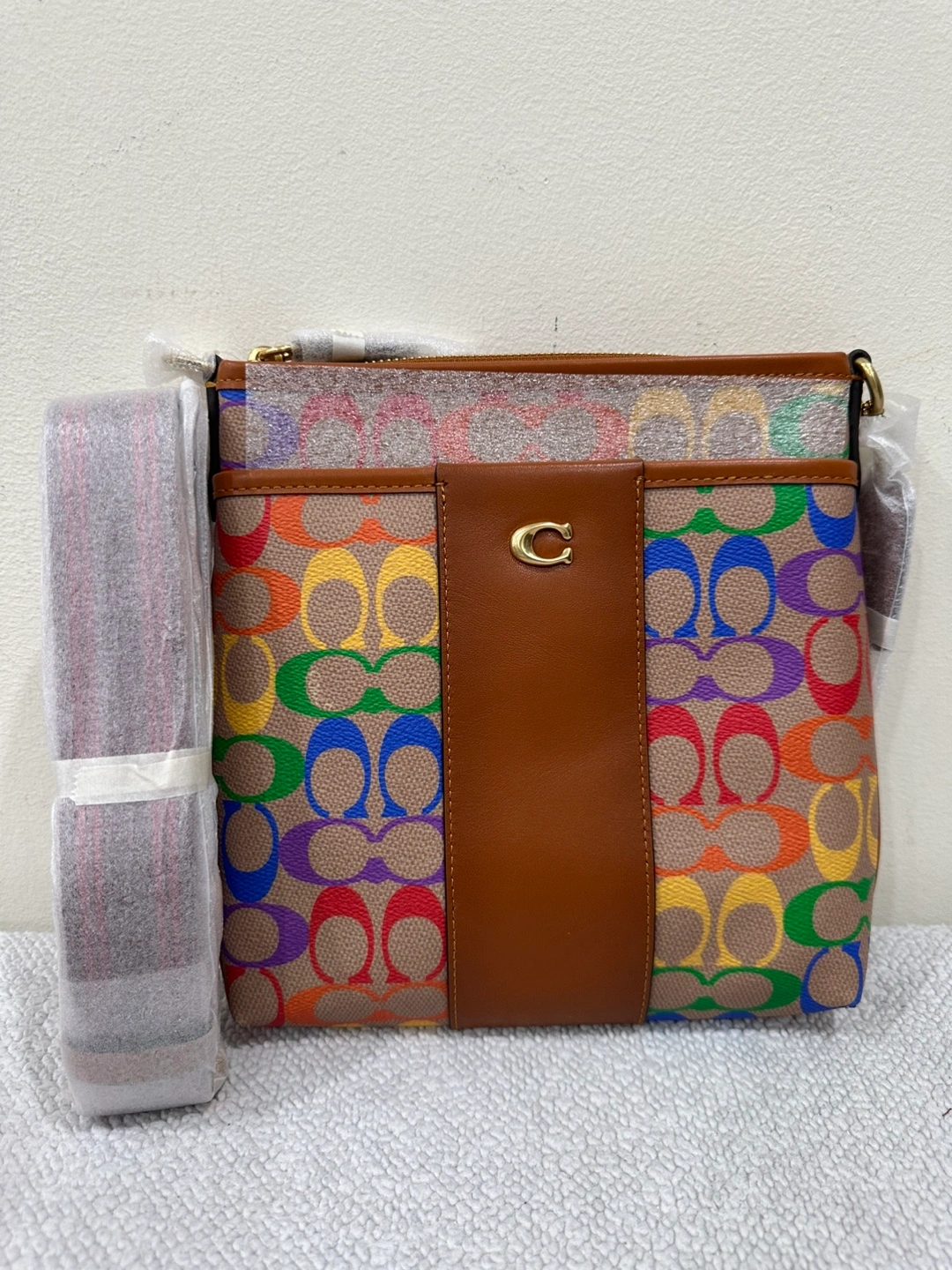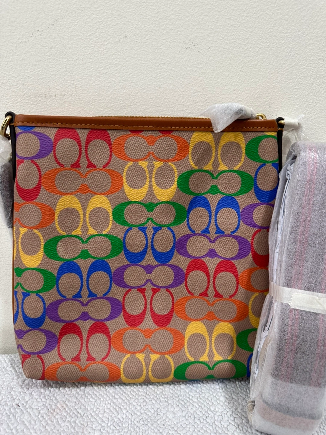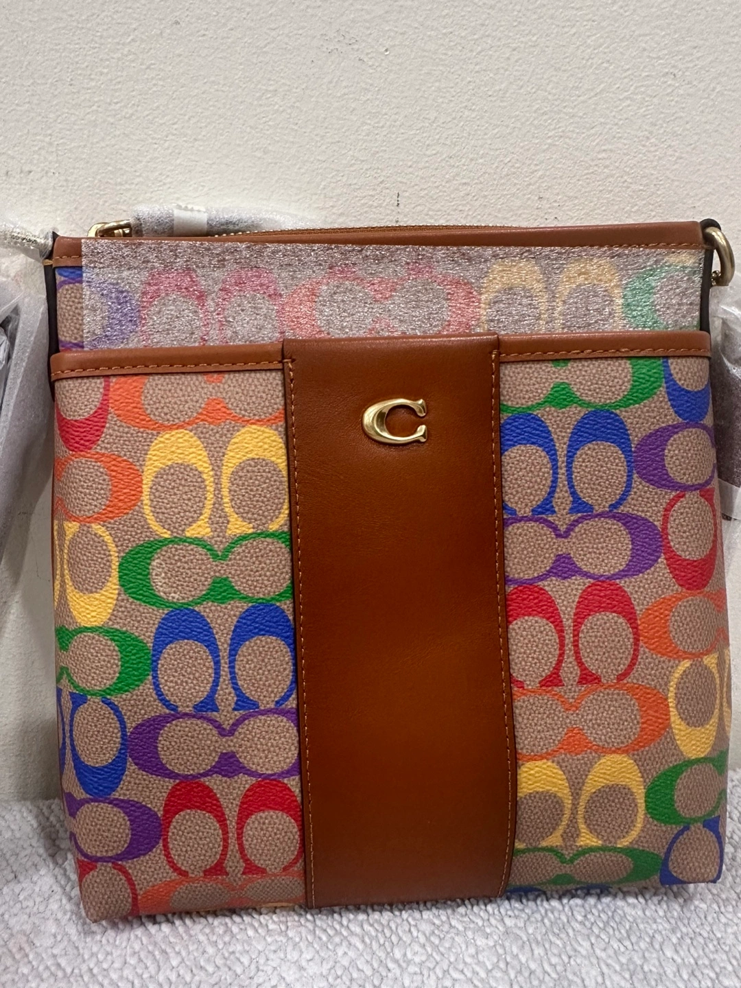Features a colourful pattern and brown leather accents. Includes a detachable strap. Can be used to add a bit of joy to your everyday life.