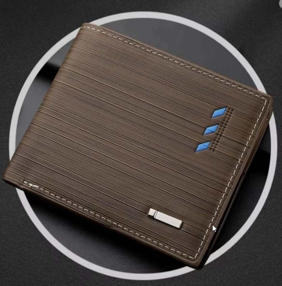 Men's Stripe Wallet Multi Function ID Credit Card Holder Two -fold Money Clip High Quality Leather Coin Purse