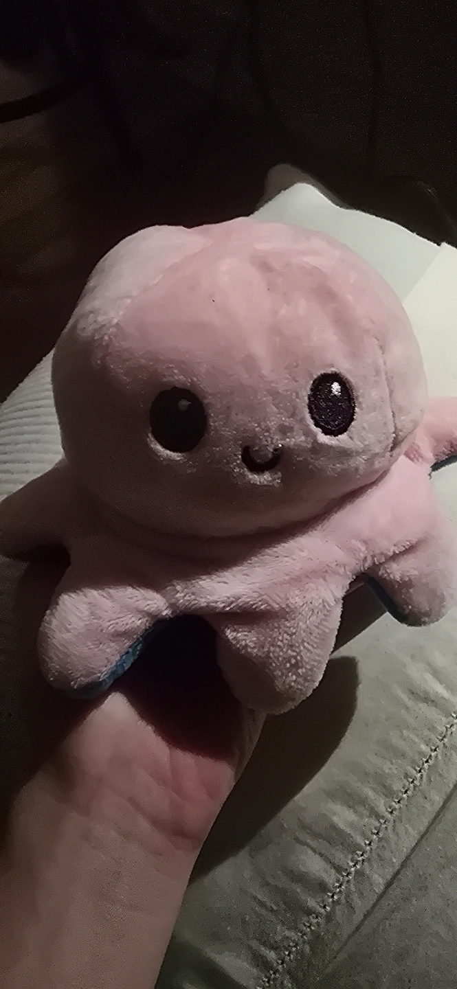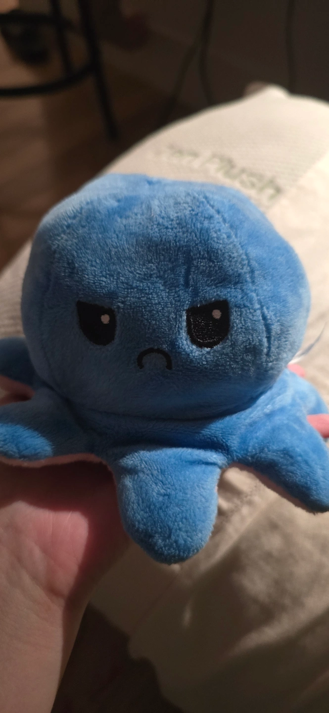 Plush reversible octopus. Features different facial expressions. Soft material and small enough to carry. This plushie can be a great companion when you feel uneasy.