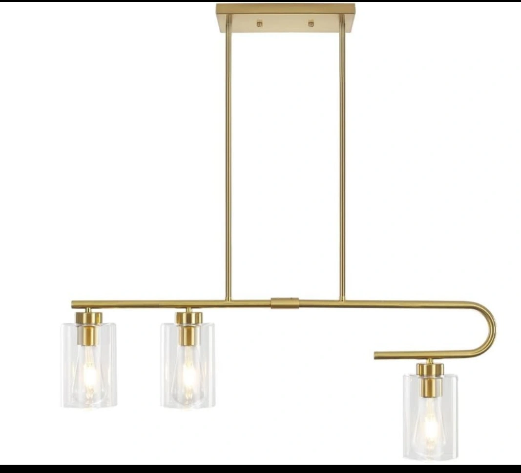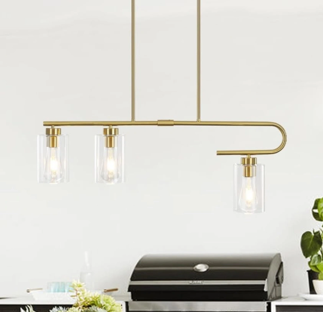 【Unique Dining Room Chandelier】Kitchen island lighting is designed to be brass gold paint, so it is a wonderful choice for kitchen island, you will enjoy softer and more comfortable light with its transparent clear glass shade.