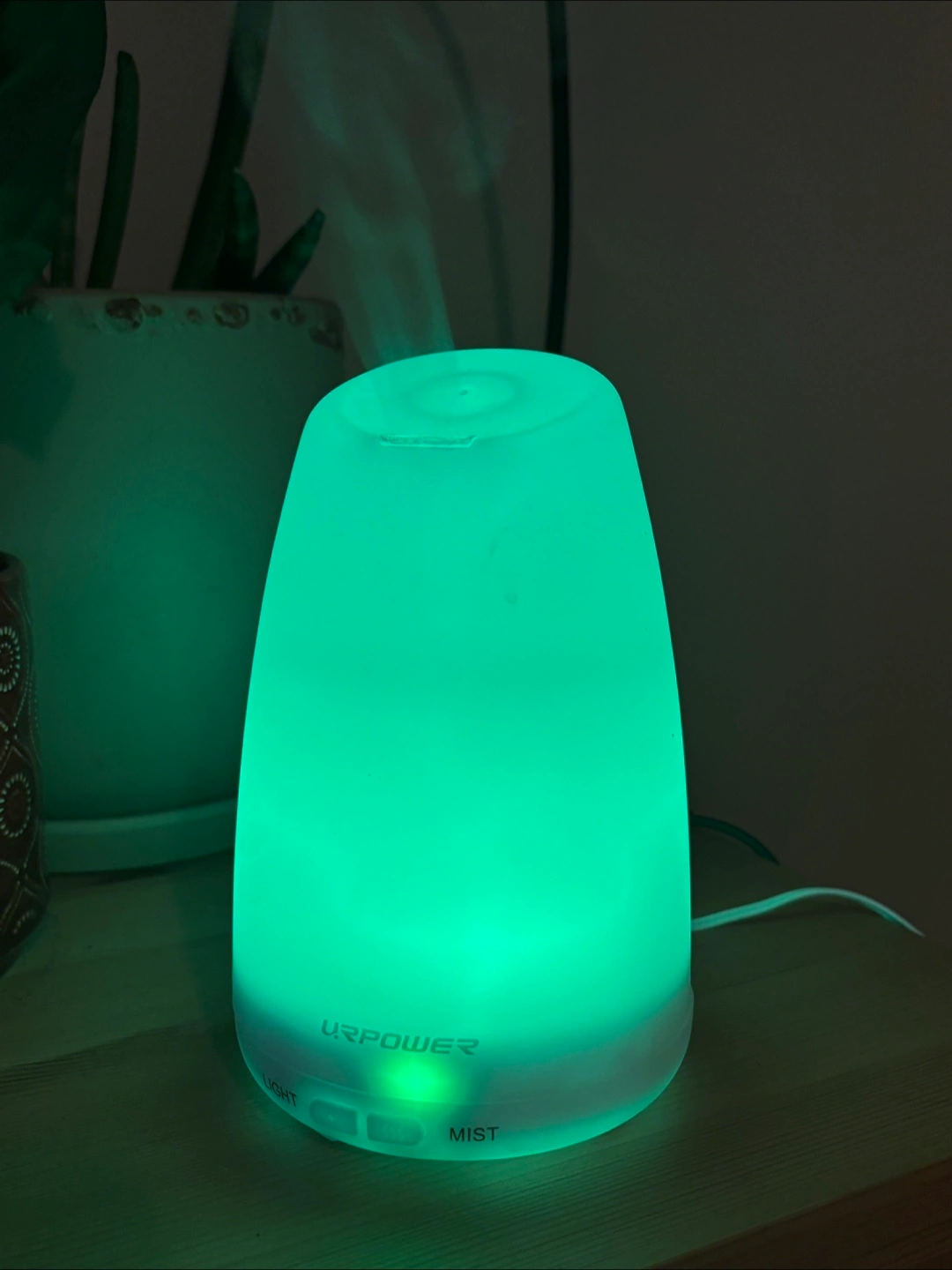 Translucent white table-top diffuser. Choose from one of several light colours or let it auto-rotate through. Mist has constant and intermittent settings. Use with or without essential oils. In perfect working condition (can send video in DM).