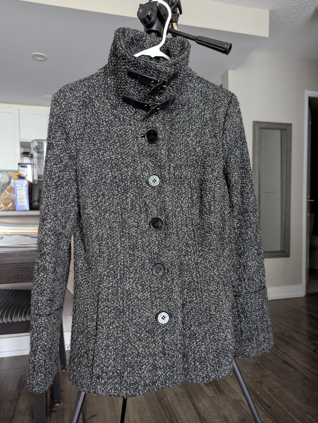 This Zara Basic coat is a stylish and versatile piece, perfect for adding a touch of sophistication to any outfit, and fits sizes small. As a used item, it has been well-maintained and is in good condition, ready for its next owner.