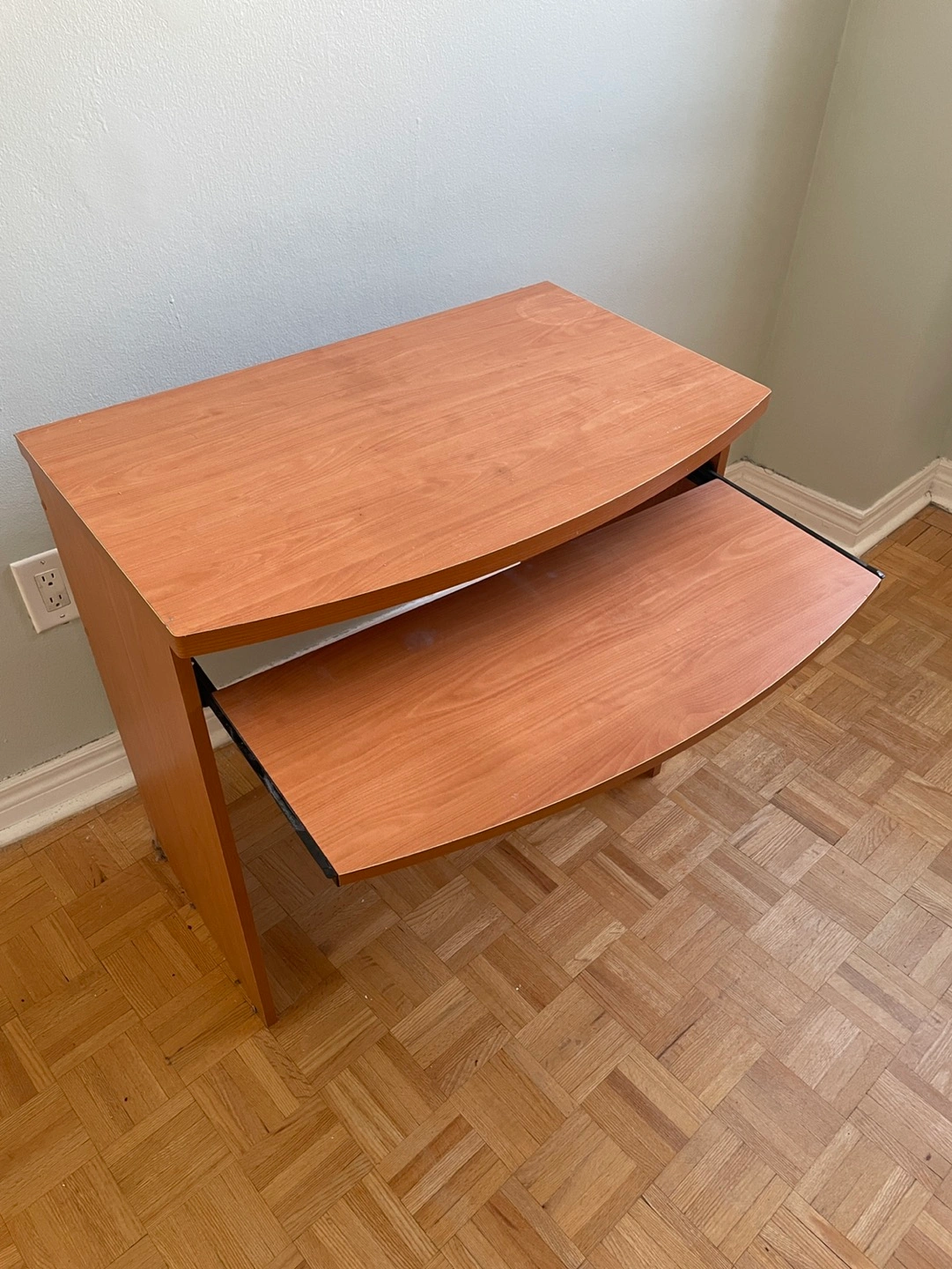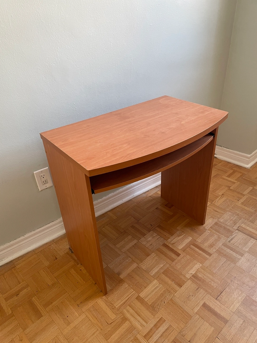 Small wood desk with keyboard tray.