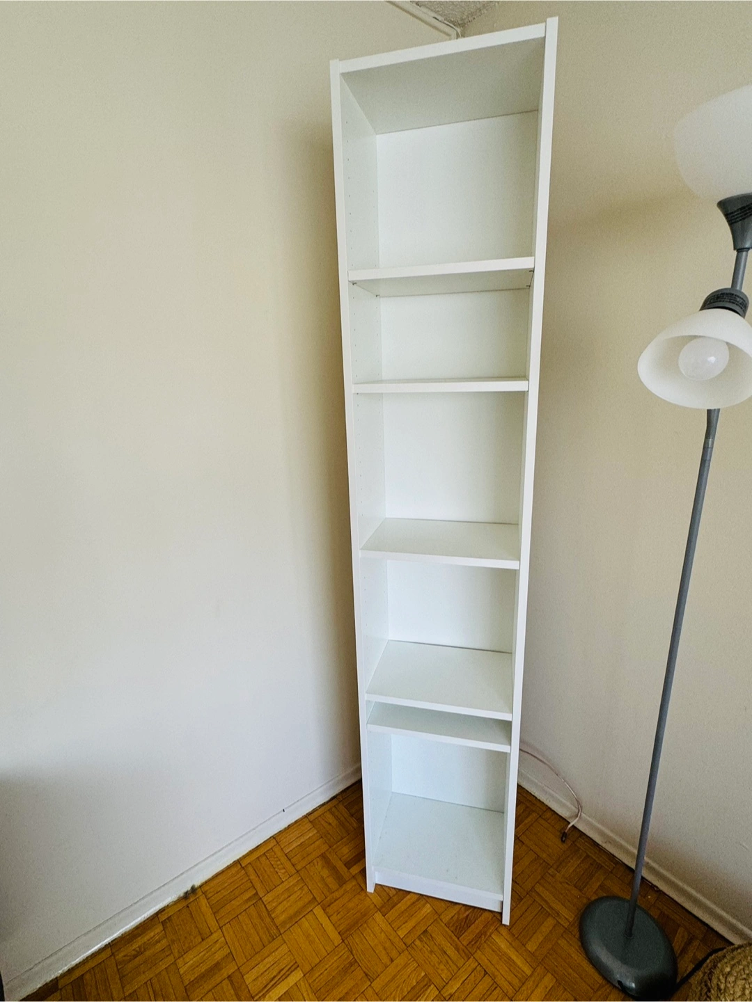 346IKEA Billy Tall, white bookshelf unit. Constructed with six shelves. Great for storing your favorite books and enjoying a quiet moment. Check photo slides for dimensions. PICK UP ONLY.