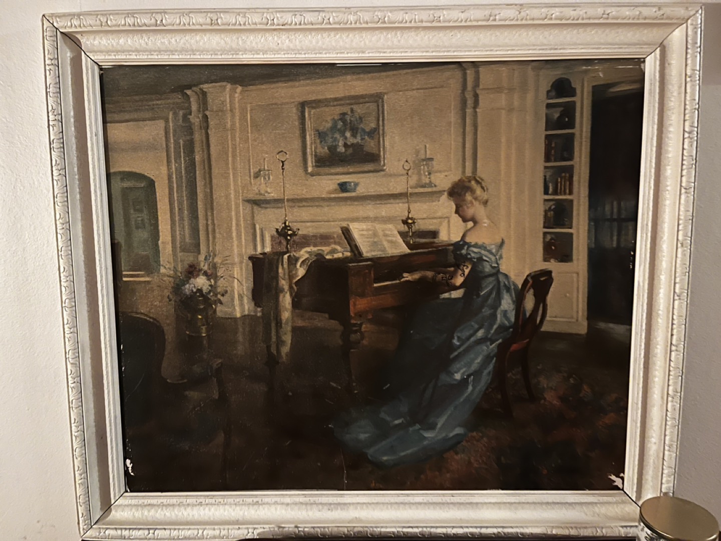Beautiful print of a woman playing piano. Large, wooden frame. Absolutely love this piece but Iβm changing up my decor! pickup fairview.