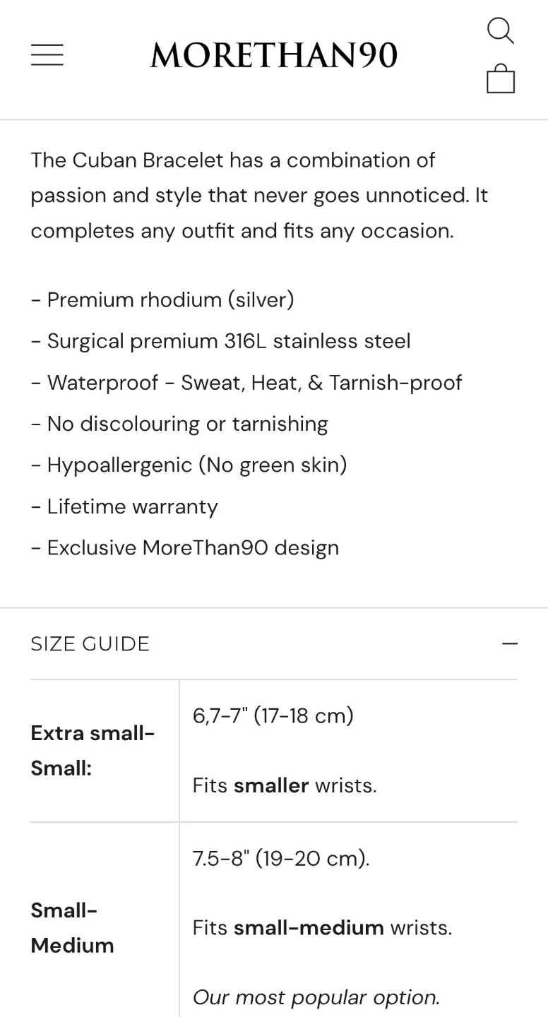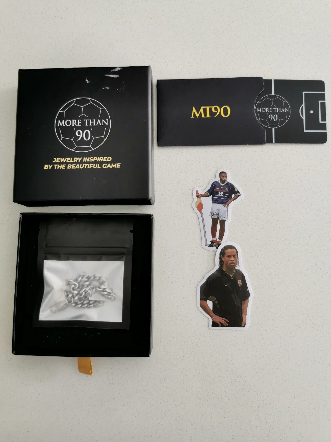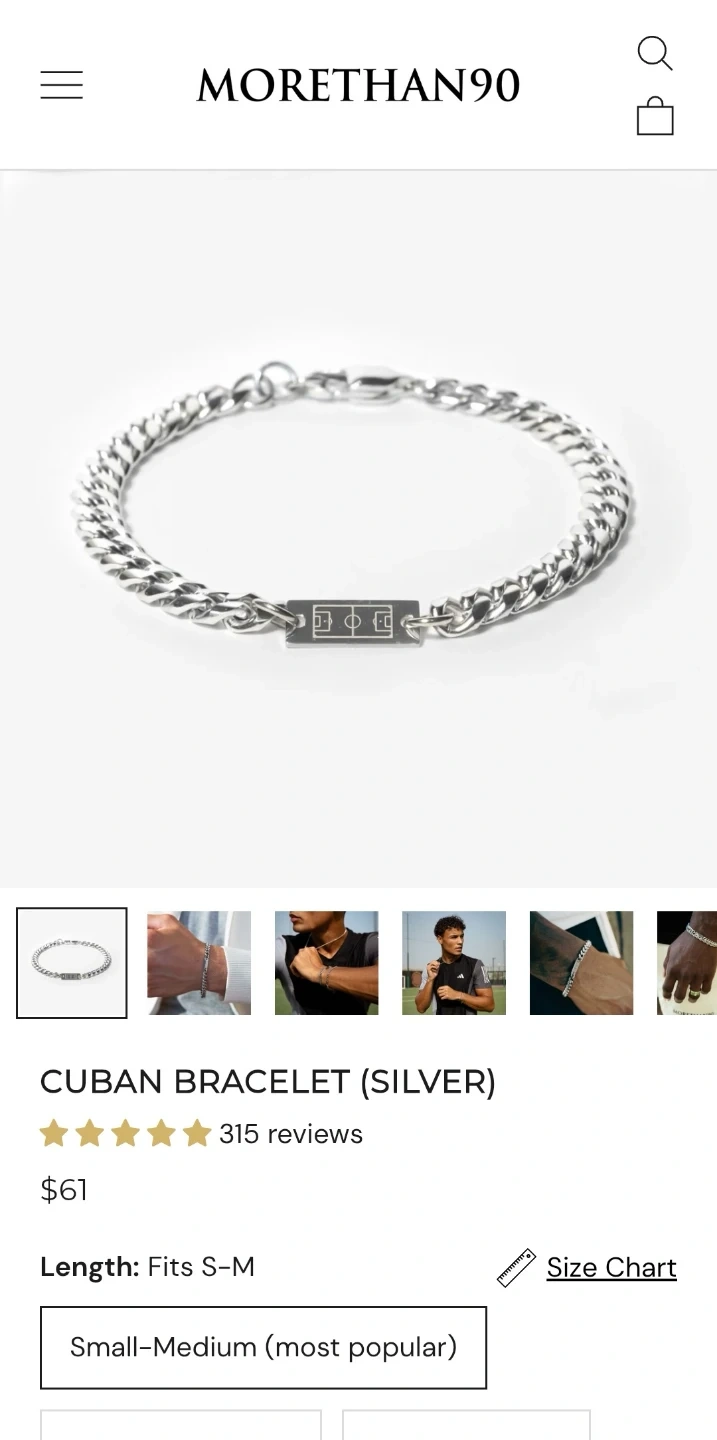 728Here is a MoreThan90 Cuban Bracelet! This sleek, silver bracelet features a unique football pitch design, combining style and passion for the beautiful game. It's new open box. Specifications: * Premium rhodium (silver) * Surgical premium 316L stainless steel * Waterproof - Sweat, Heat, & Tarnish-proof * No discolouring or tarnishing * Hypoallergenic (No green skin) * Exclusive MoreThan90 design It's small-medium, 7.5-8" (19-20 cm). Looking to add some flair to your wrist? This bracelet is a game-winner, on and off the pitch! Don't miss out – if the ad's up, it's available!