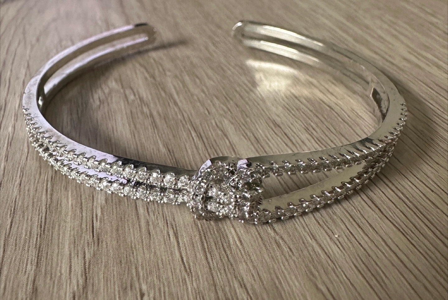 292Silver tone bracelet. Decorated with small, shiny stones. Can be worn for special occasions. Allow yourself to be drawn in by its serene appearance. Brand new, never worn