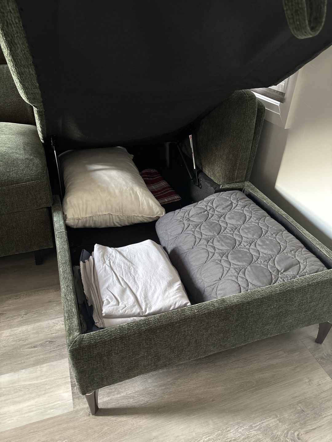 1 / 61 / 6Buy & SellDakota Sectional Sofa BedDakota Sectional Sofa Bed$1,200Beautiful dark green Sectional sofa with storage. Features a pull out bed and storage.WHERE TO MEETCheck LocationView MapSELLERSarah BLandsdale18718 reviews1 chats·0 favorites·46 viewsSEND CHAT TO SELLERHi Sarah B! I’m interested in your listing.Hi Sarah B! I’m interested in your listing.Get the Karrot app to chatSign In to chat