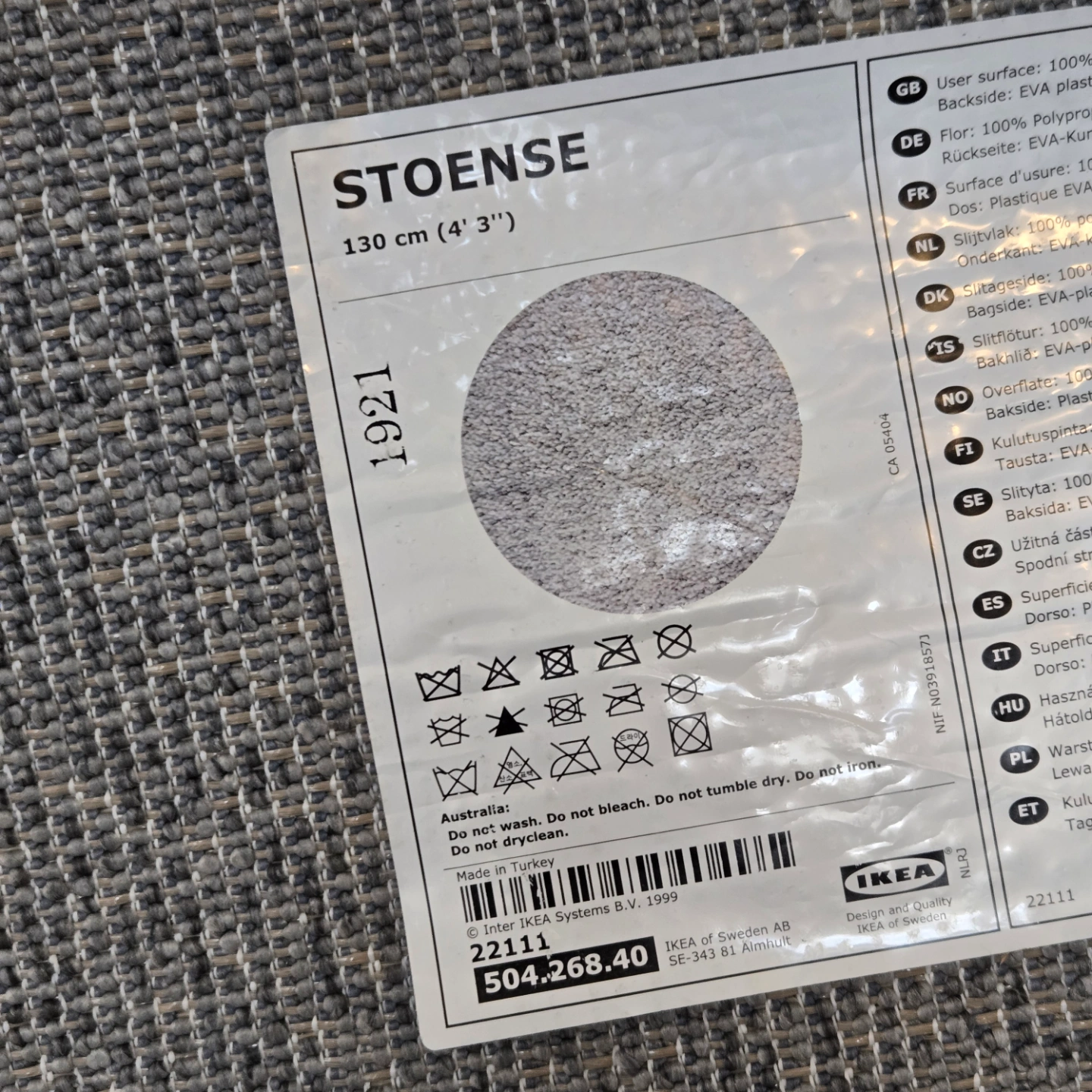 Rug, round, grey, 130cm × 130cm (Ikea - STOENSE)