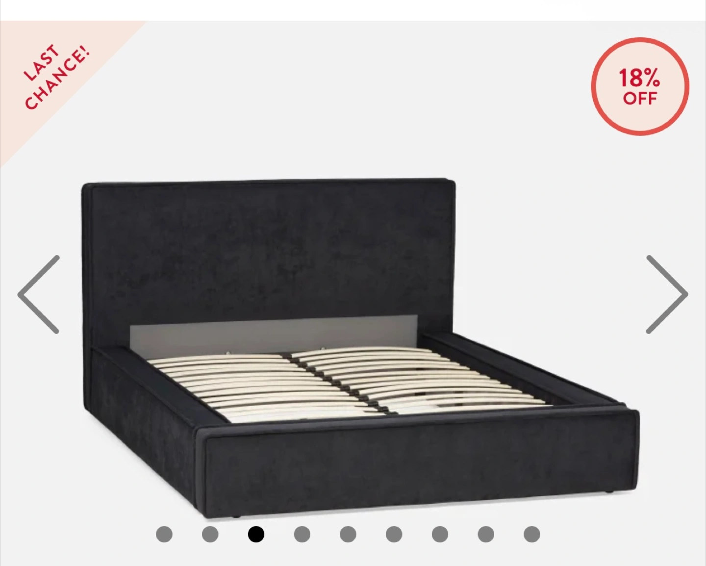 This is a used King Size Bed. In excellent condition. Black in good condition, ready to bring modern comfort to your bedroom. This sleek, low-profile bed features a solid wood frame and plush upholstered headboard, perfect for a stylish and restful night's sleep. This bed has been well-maintained.