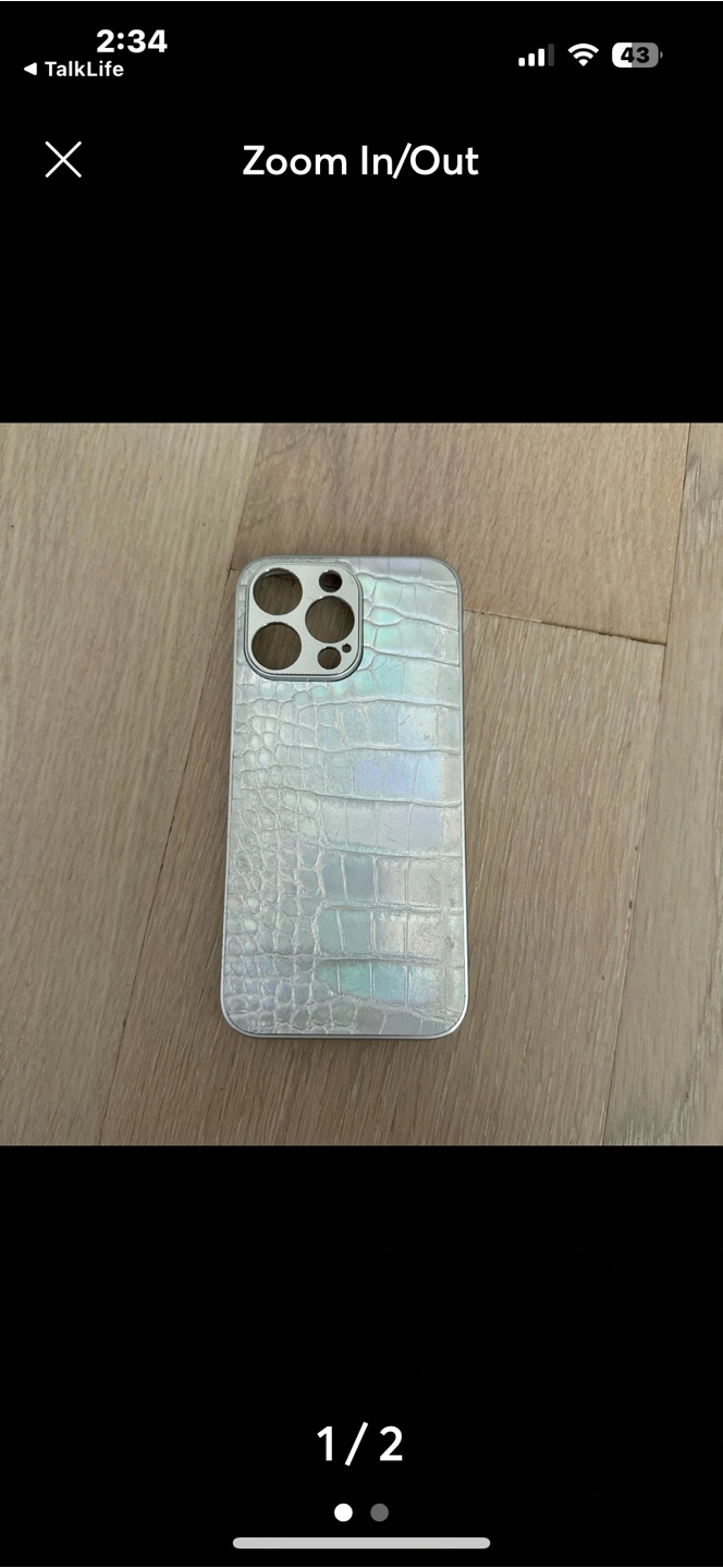 Silver phone case. Design features a textured pattern. Perfectly protects your phone, allowing for peace of mind. Holographic