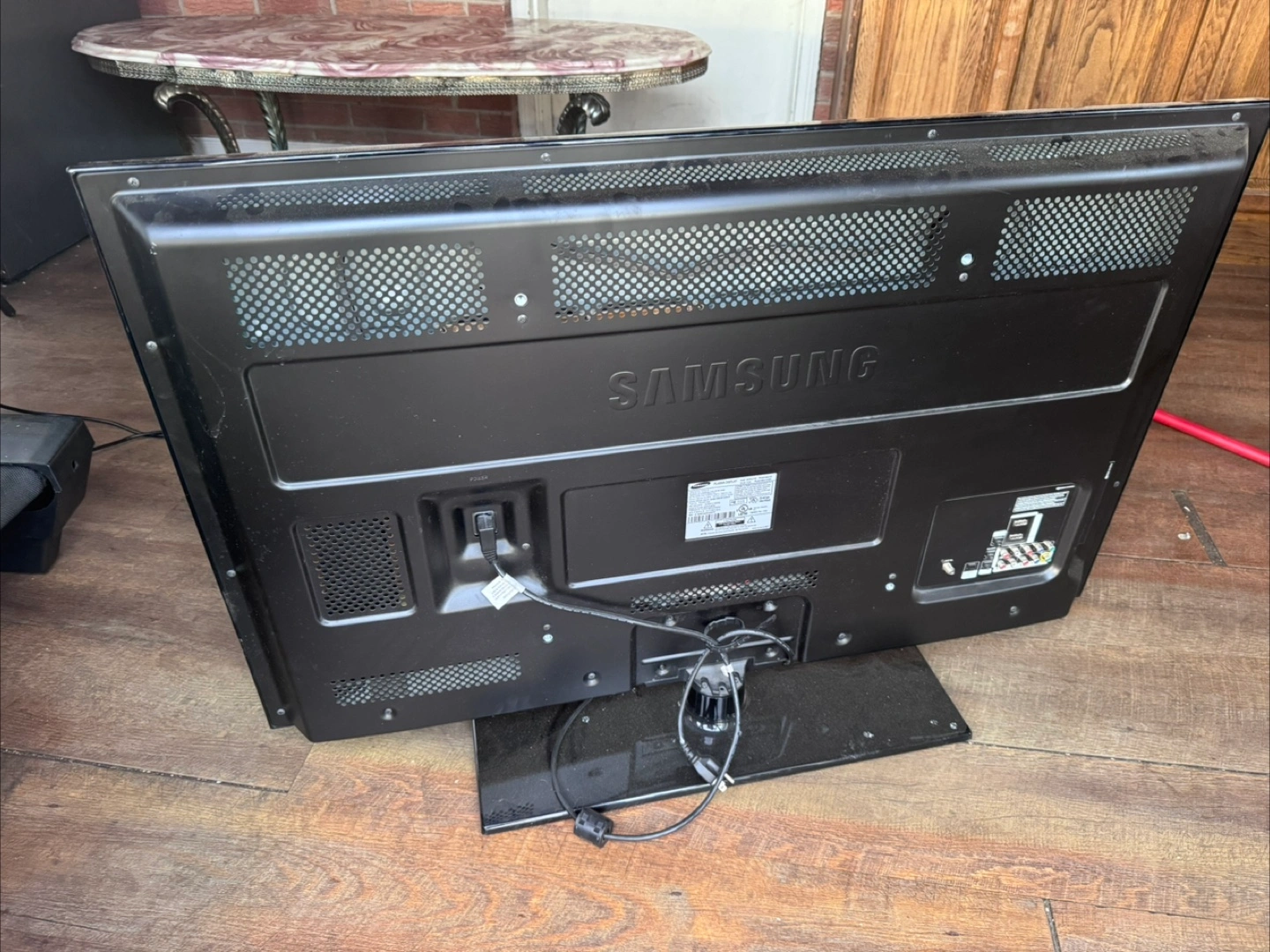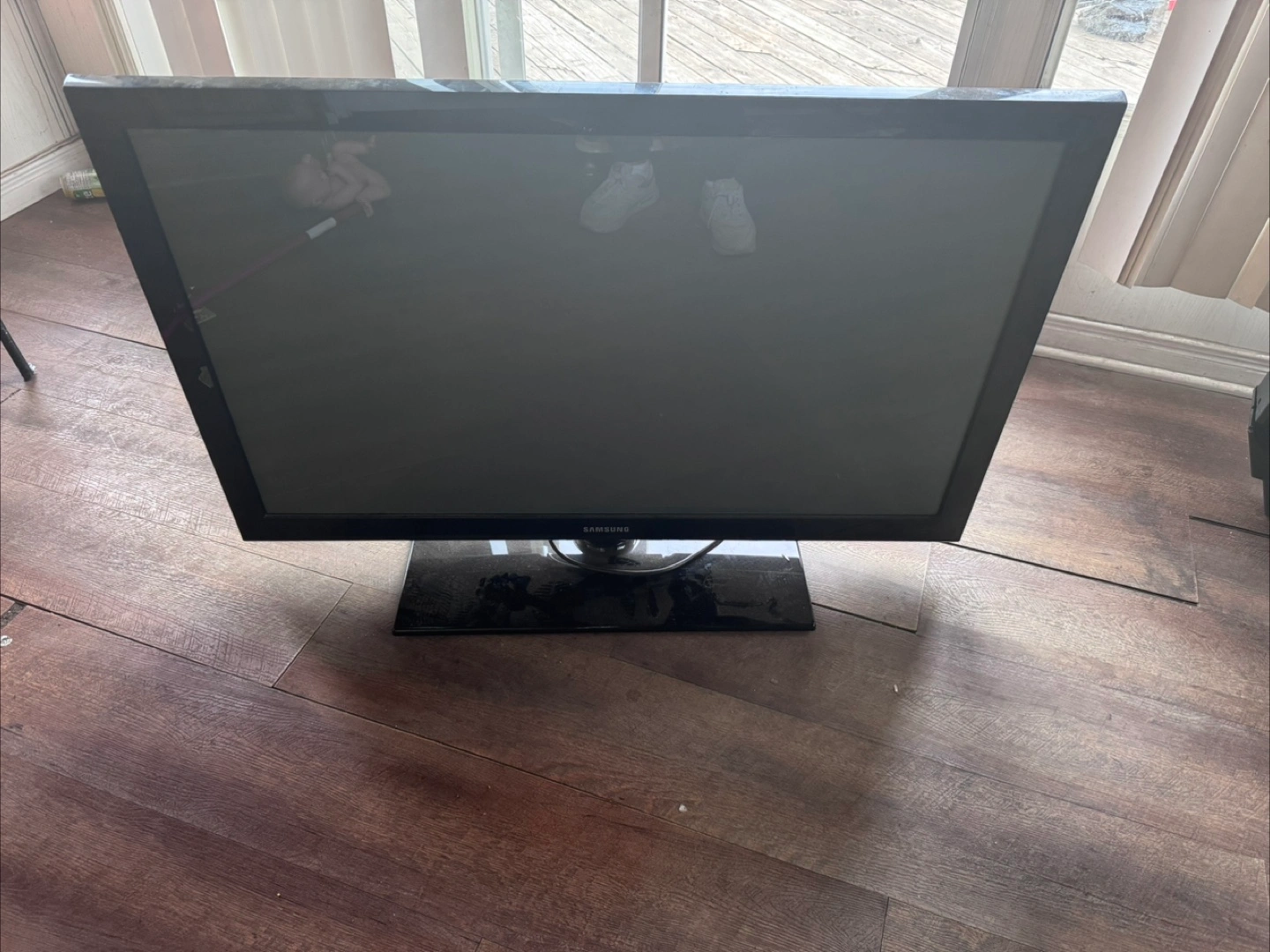 Black television. Rectangular screen shape. Features a stand. Relaxing on your couch watching your favourite show is a great use for this item.