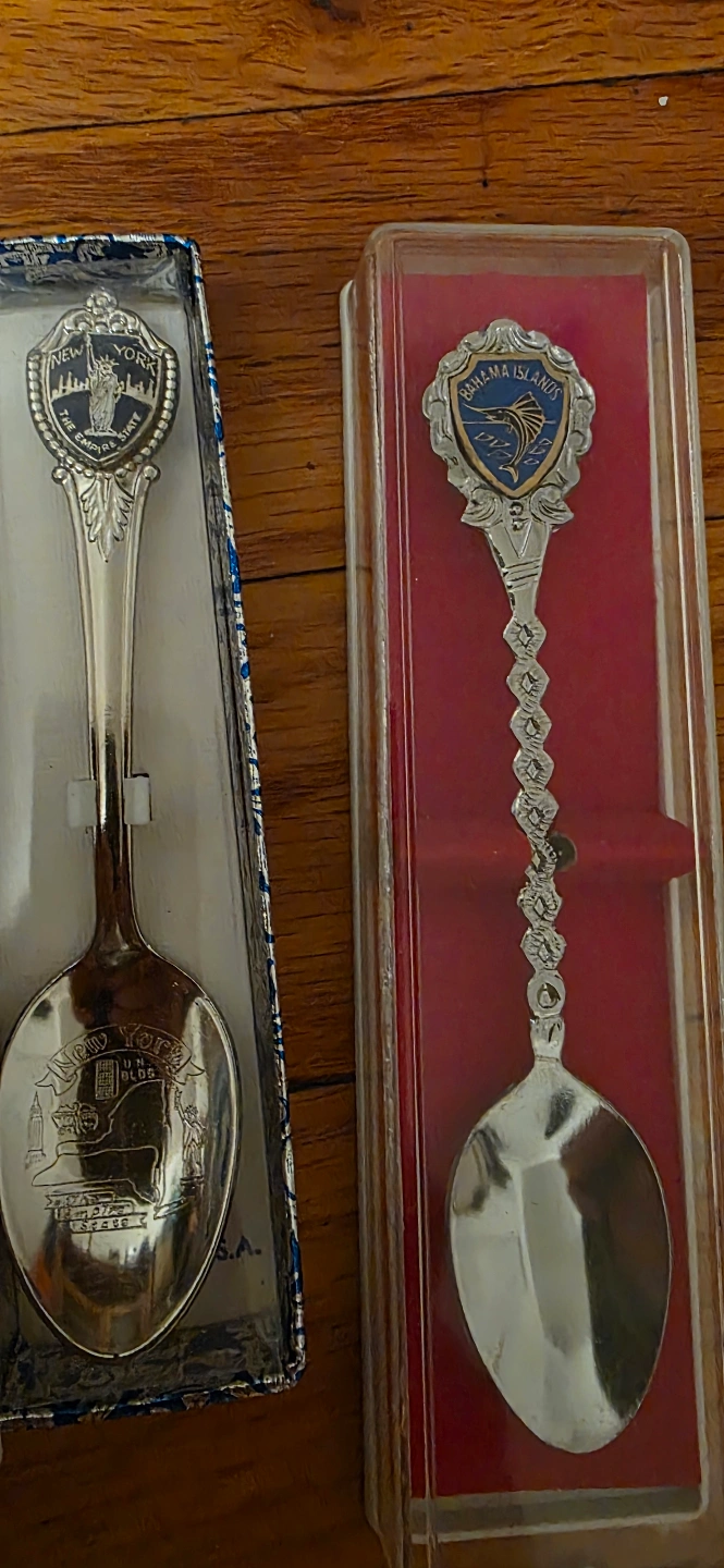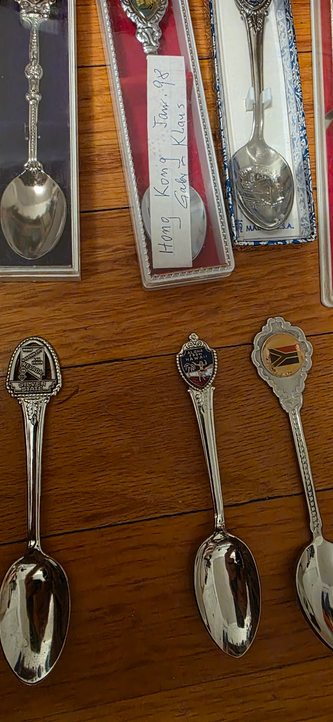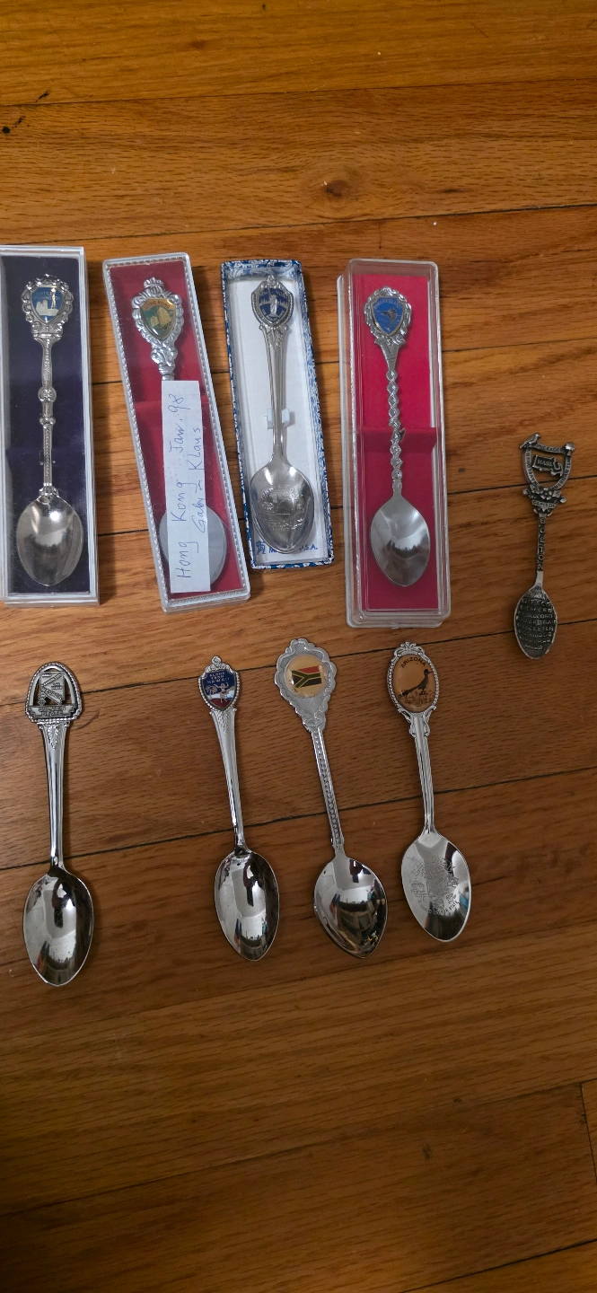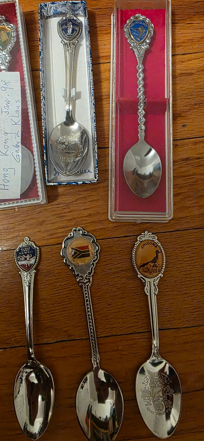 23Variety of souvenir spoons. Each spoon features a different design and location. Would be a nice addition to any vintage collection.