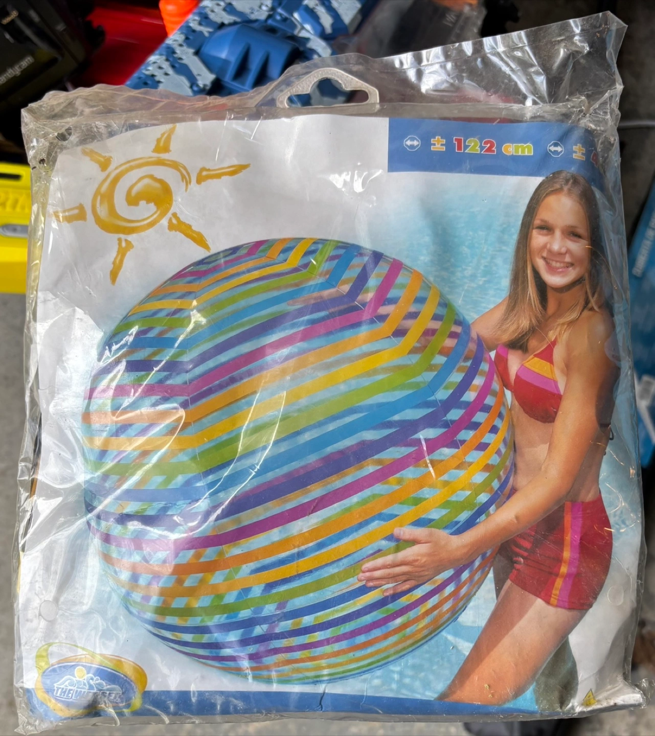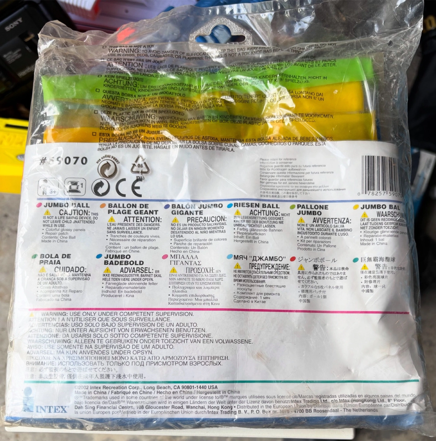 Sealed package. Jumbo size inflatable ball. Features a colourful striped design. Perfect for a relaxing day at the pool or beach. Vintage 2002 Intex The Wet Set Jumbo Beach Ball 48" #59070 Rainbow Stripes