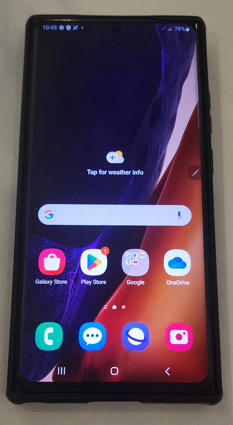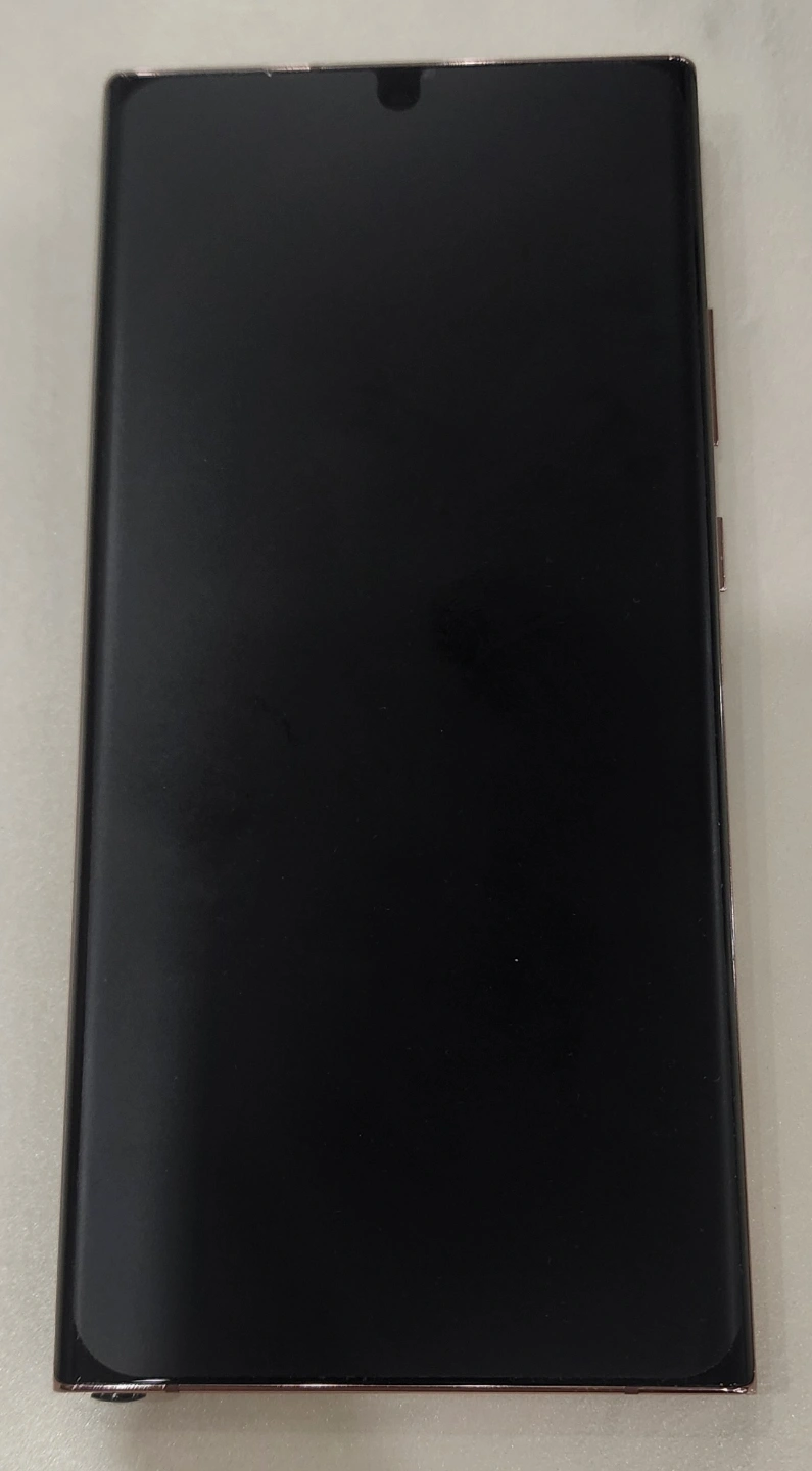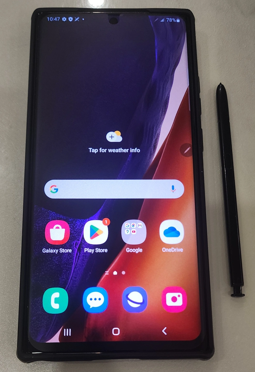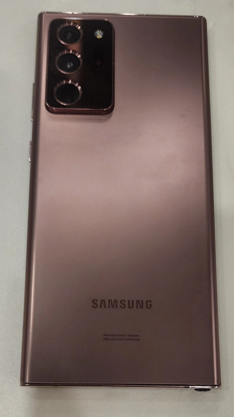 The back has three camera lenses and the Samsung logo. The phone comes with a stylus, so it's great for all your creative endeavors.