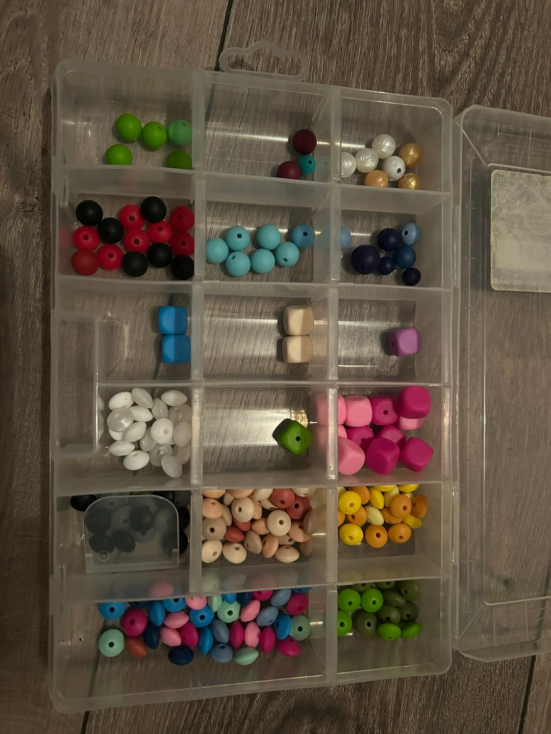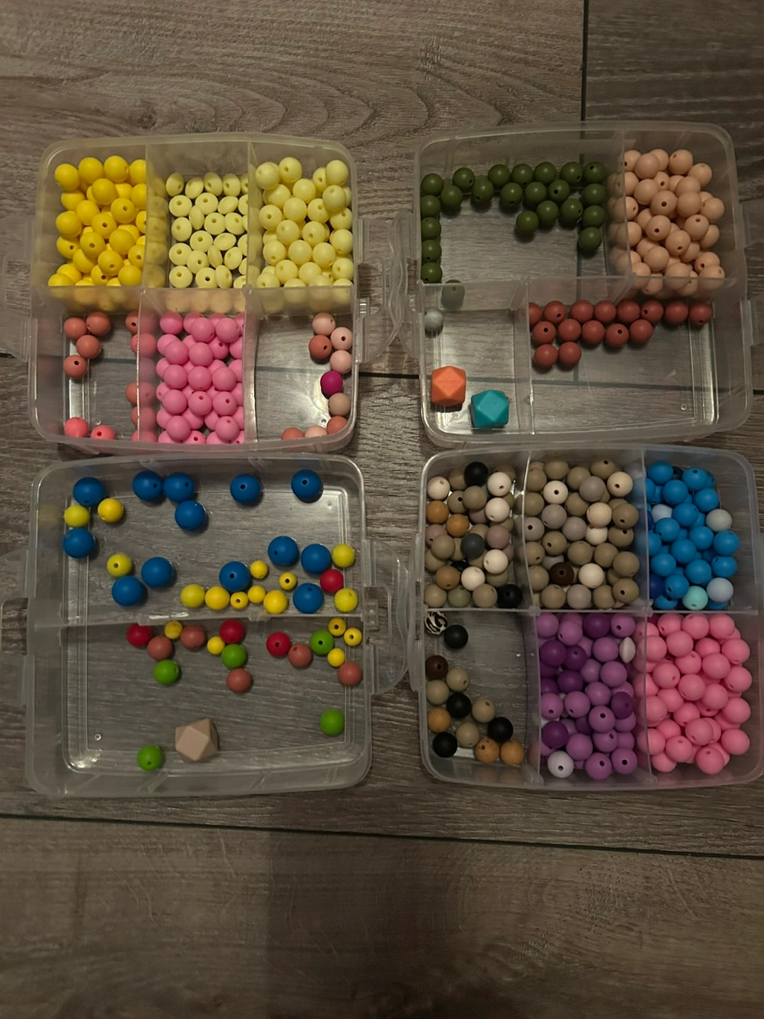Assortment of silicone beads and string for purchase. Selling all together for $1,000. There is enough beads and other accessories to start a small business.