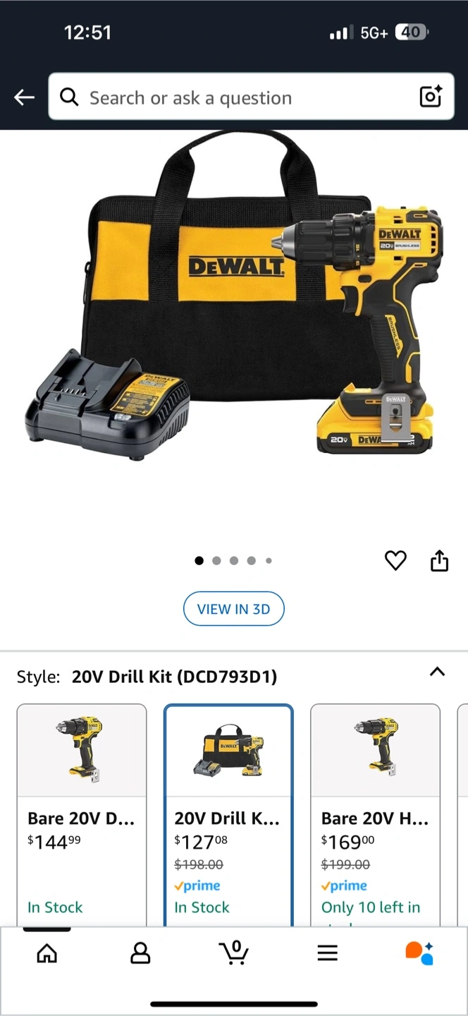 A compact drill kit. Includes a drill, charger, and storage bag. You can use this kit to enhance your DIY projects or tackle home repairs with ease and efficiency.