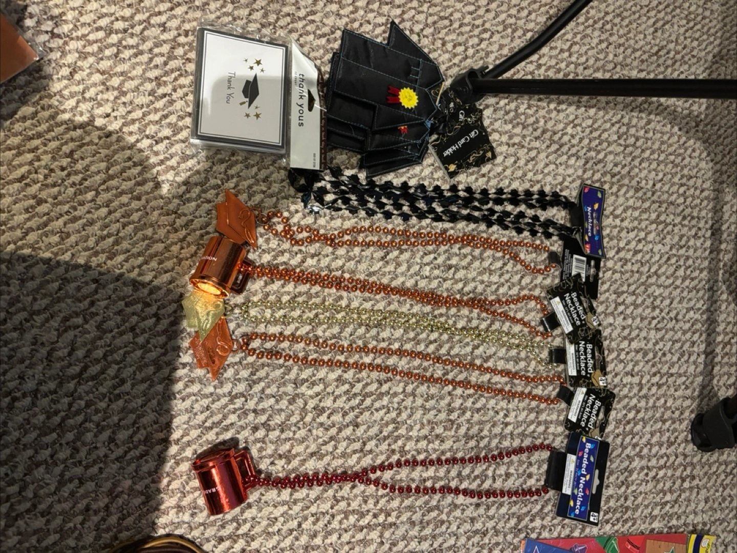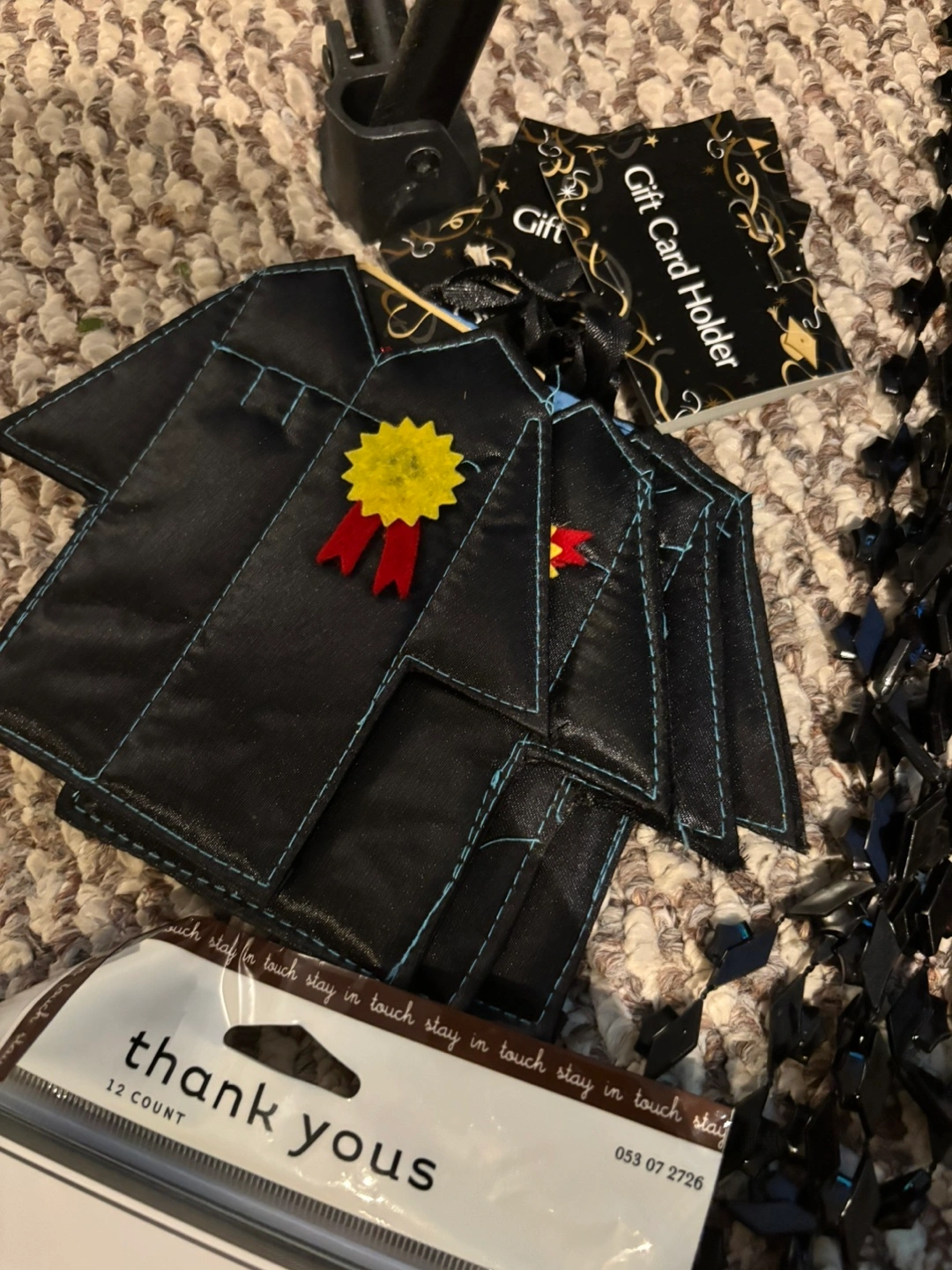 243Assortment of graduation themed party supplies. Includes thank you cards, graduation themed necklaces, and 4 graduation gift card holders. You can use these items to make your next event a success. Price is obo, please make an offer!