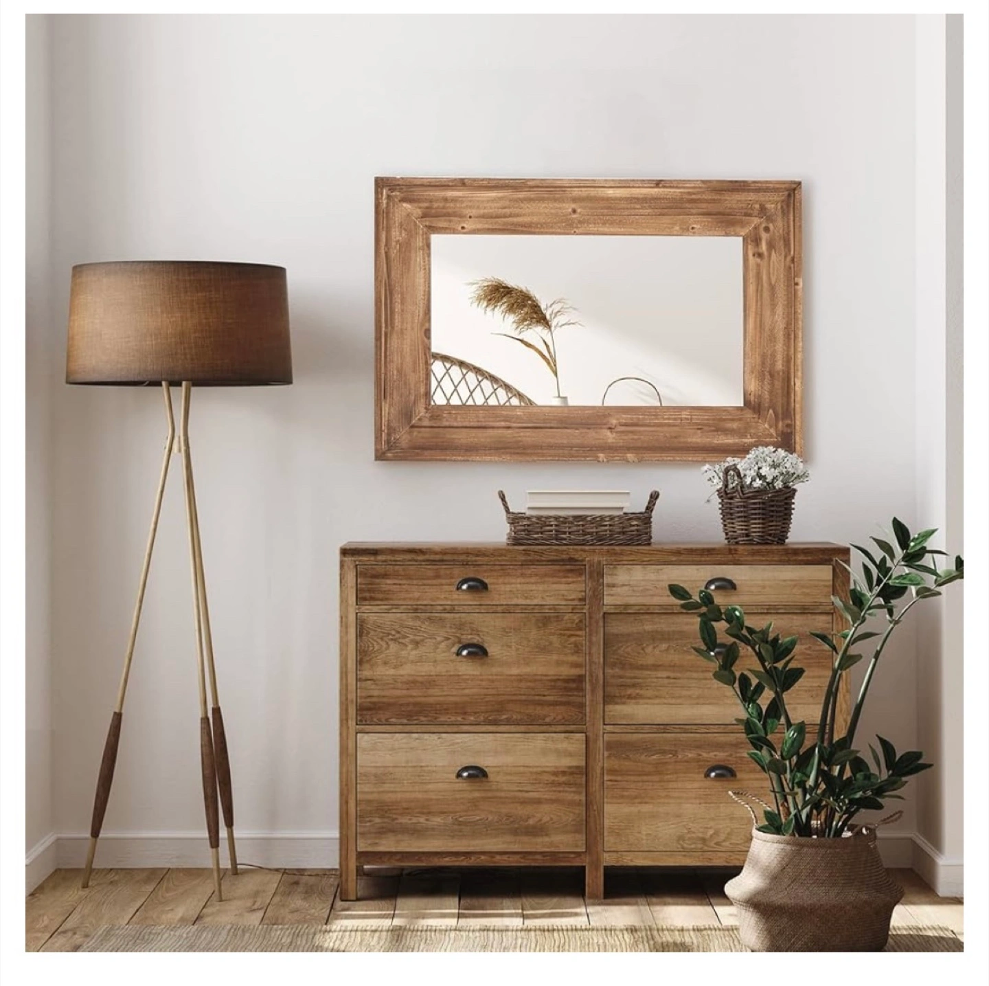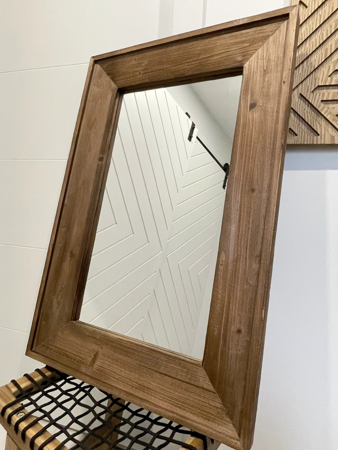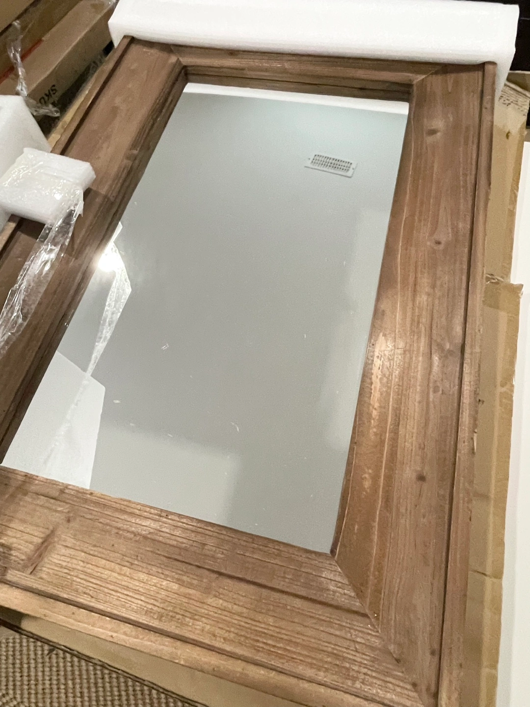 Gorgeous ! Rustic Wood Frame Mirror 24x36” Hang Horizontal/Vertical. Brand New in Box. $50 firm. Reg. $110 +HST
