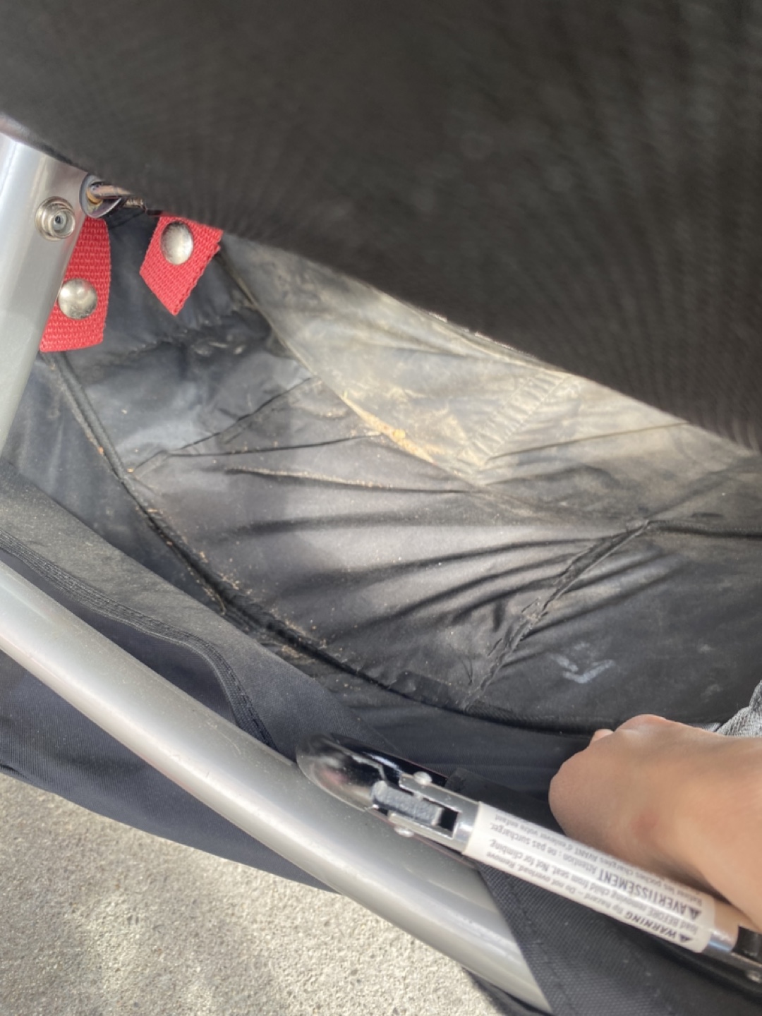 The under stroller basket was mended as there was a hole and the price reflects the fix. Still works perfectly fine.