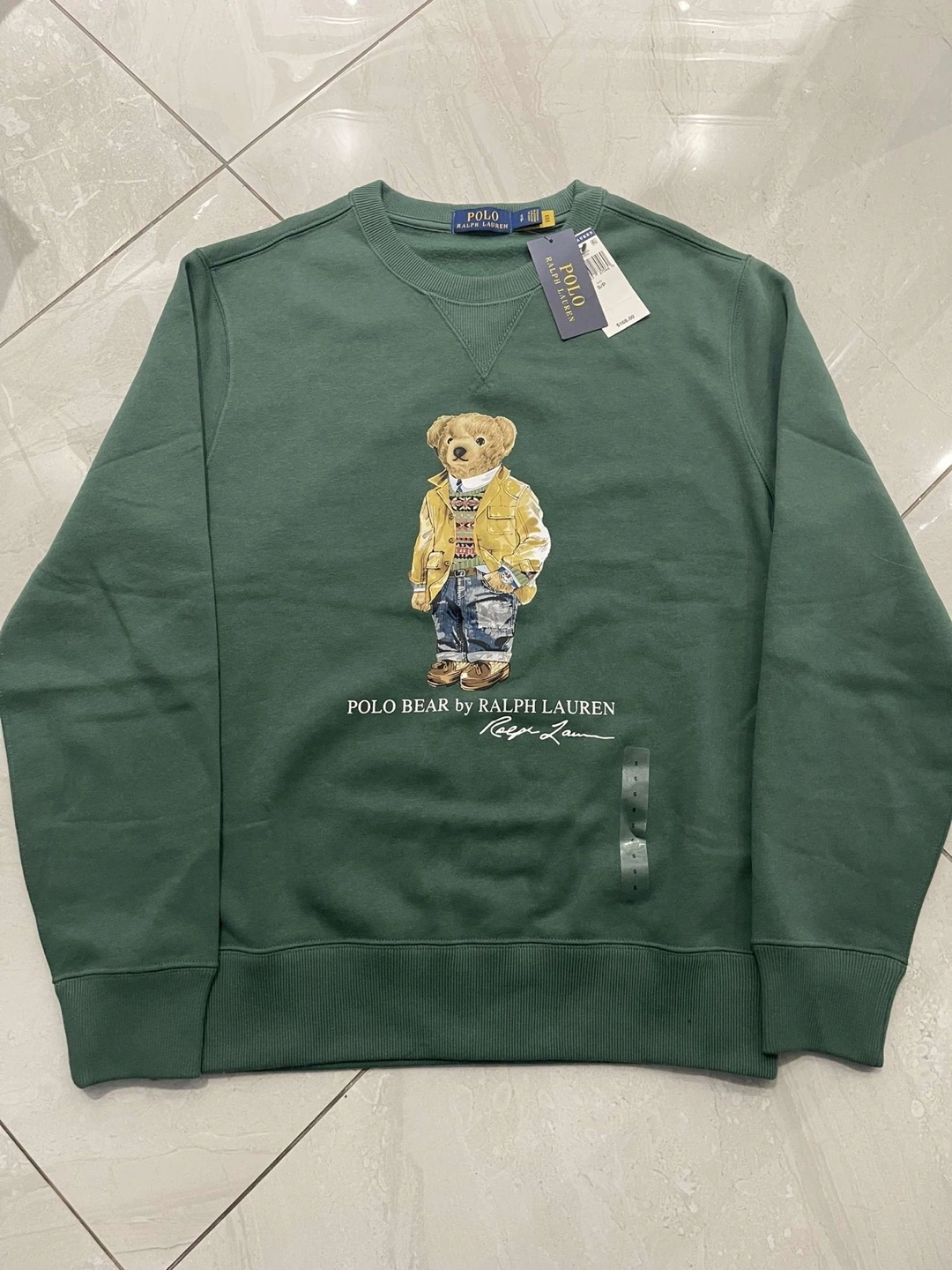 Crew neck sweatshirt. Features a bear graphic on the front. Made from a soft material. Consider wearing this when you need to feel safe and comfortable.