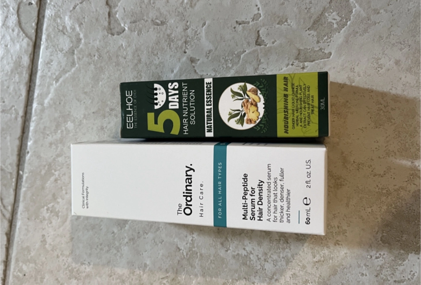 Two hair serums for your daily routine. One is for hair nutrient solution and another for hair density. These serums are perfect for a relaxing self-care session.