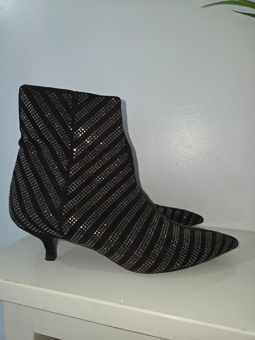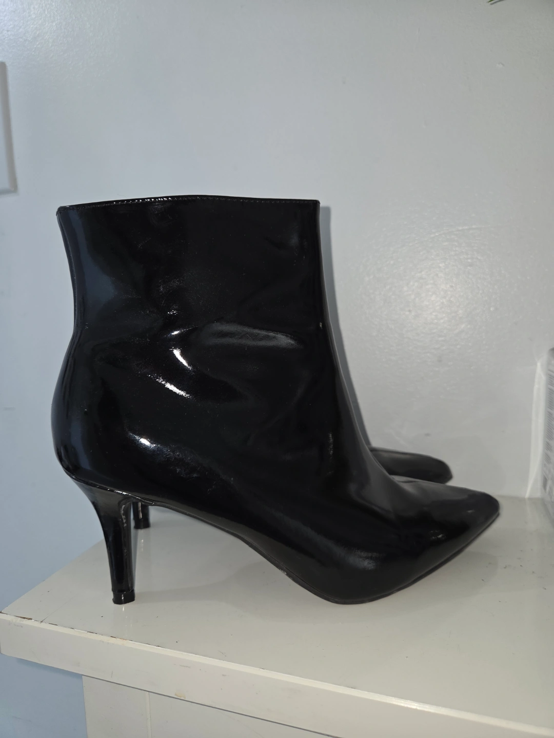 Booties, various styles and colors. Some with a pointed toe. There are high and low heels. A great way to complete any outfit.