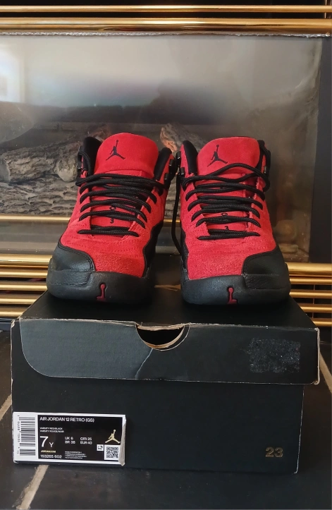 Bold red suede with classic Jordan 12 design. Perfect for everyday wear or adding heat to your collection. Serious buyers only.