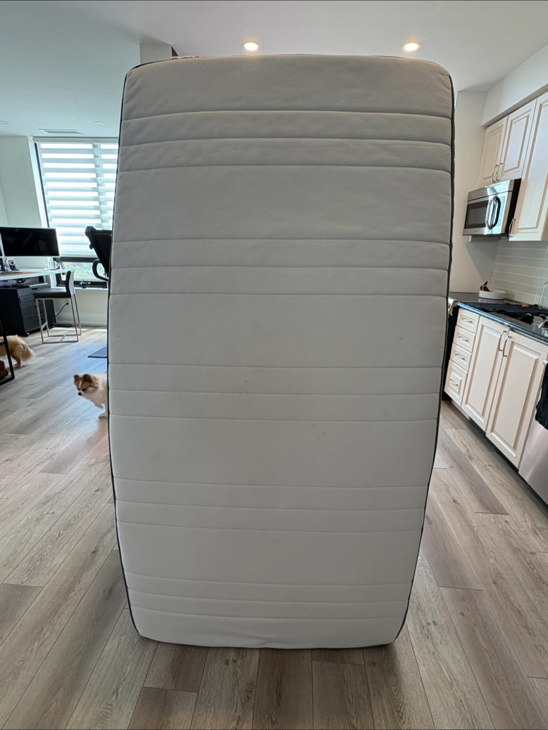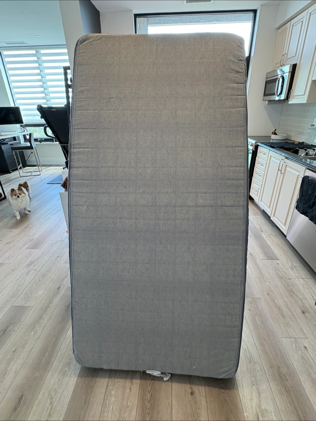 This is a twin size bed which I haven’t had for too long but is in perfect condition and is clean! Had only been used with a waterproof cover on so there are no stains!