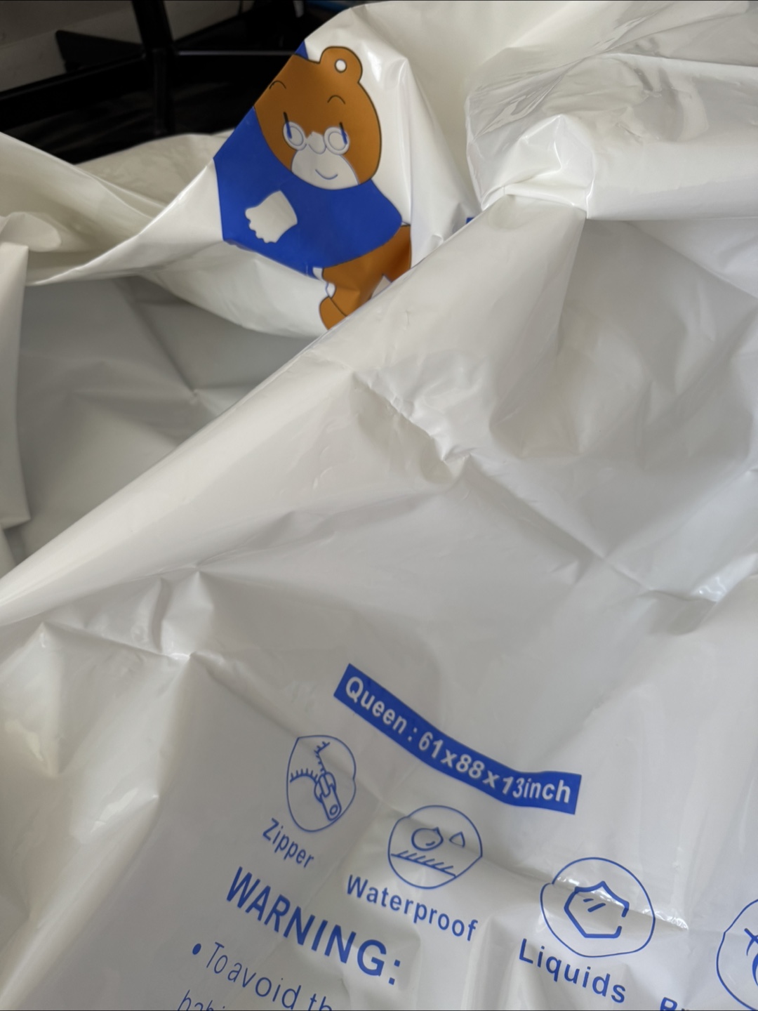 White mattress cover. Waterproof, with a zipper. Perfect for protecting your mattress, allowing you to relax knowing it's safe.