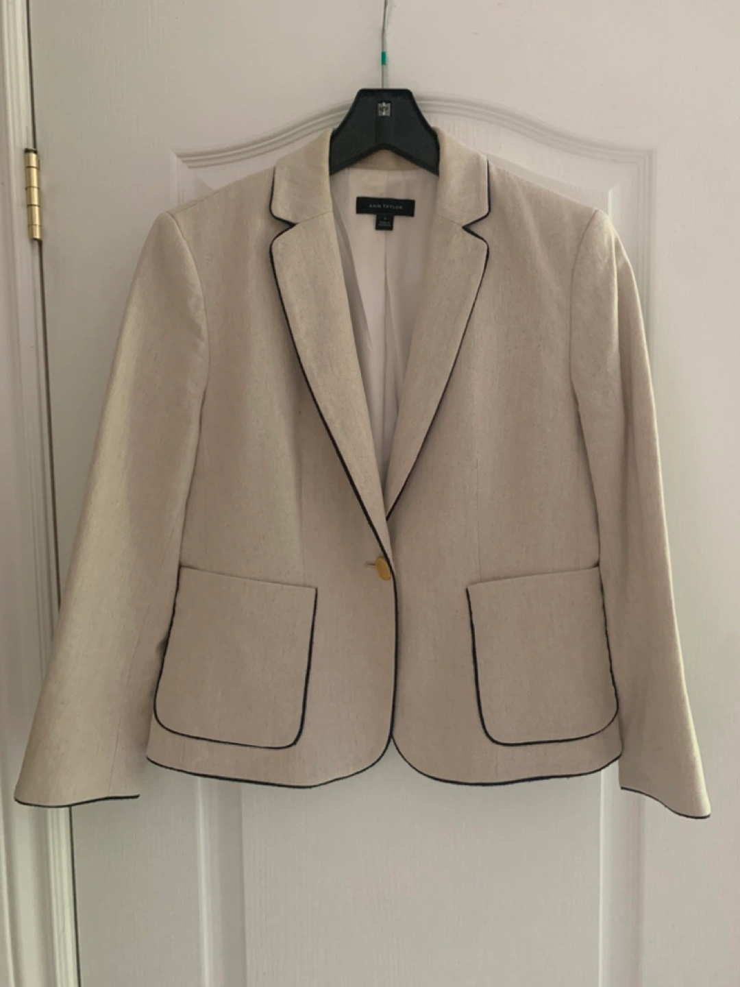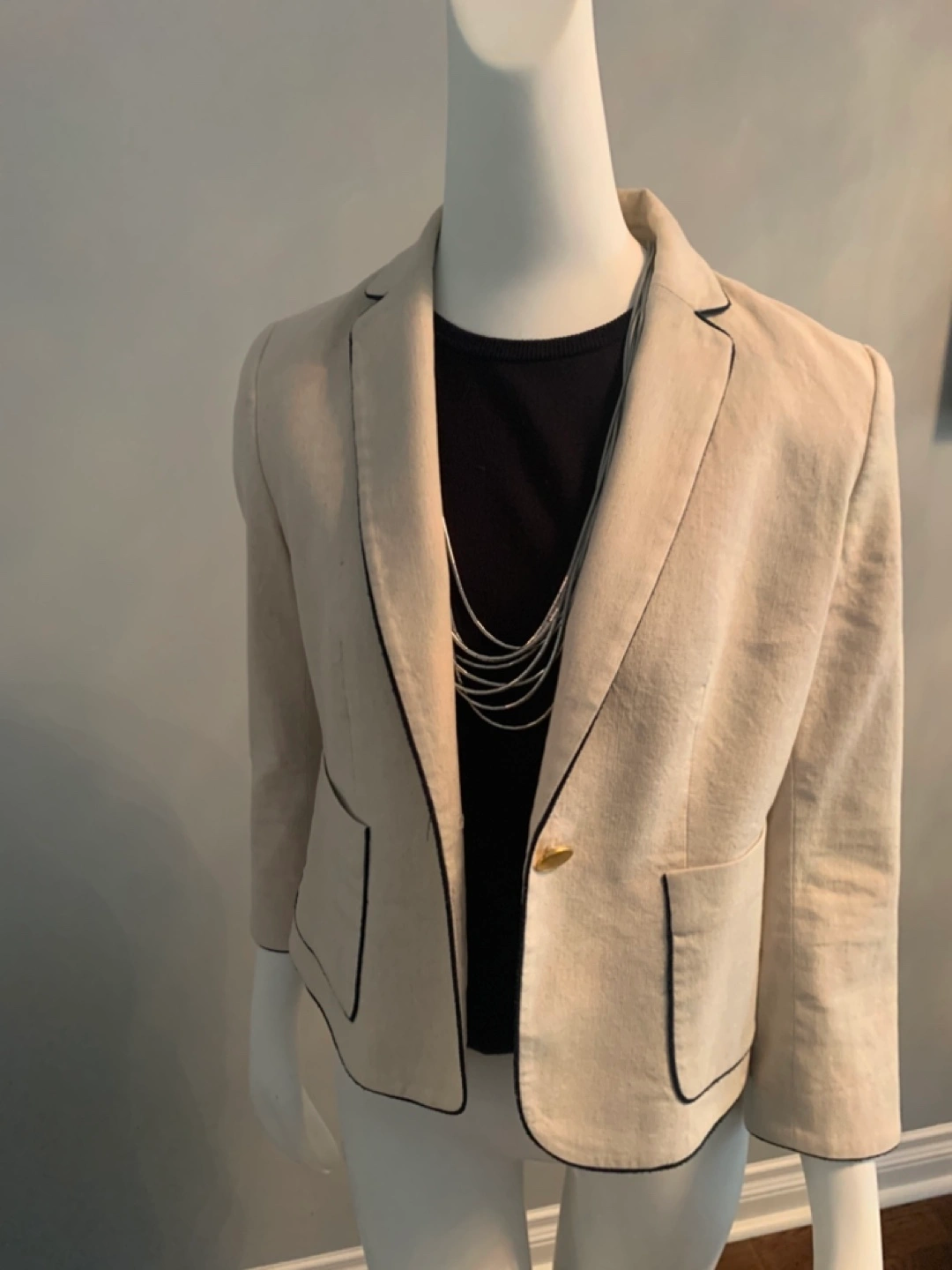 Ann Taylor: Cream, 3/4 sleeve with Blue Piping