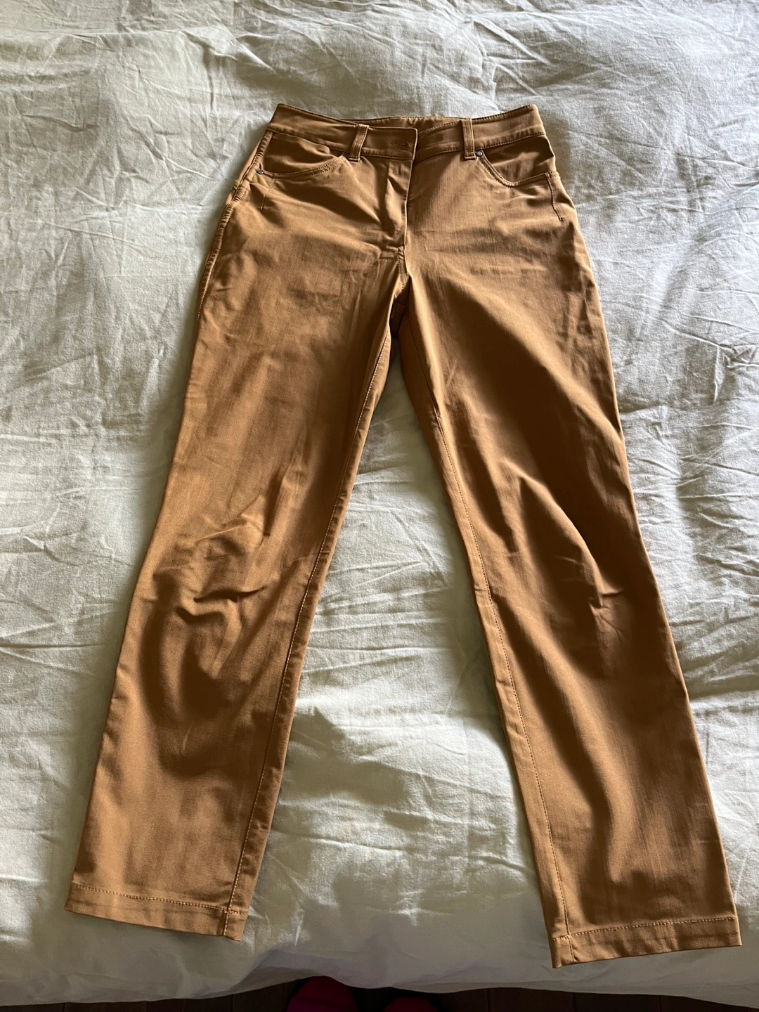 Super comfy, very good work pant. Same fabric as the men’s ABC pant. I believe it’s 25” inseam.