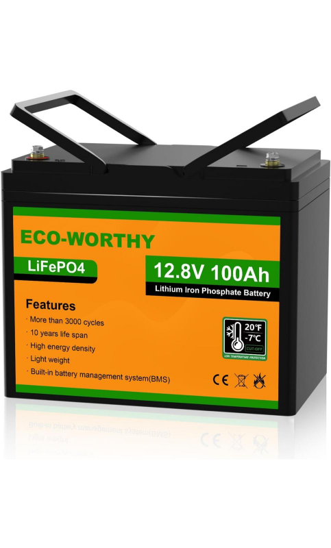 ECO-WORTHY 12V 100Ah LiFePO4 Lithium Battery with Low Temperature Protection, built-in BMS, Up to 15000+ Deep Cycles, Perfect for Trolling Motor, RV, Camping, Off-Grid System