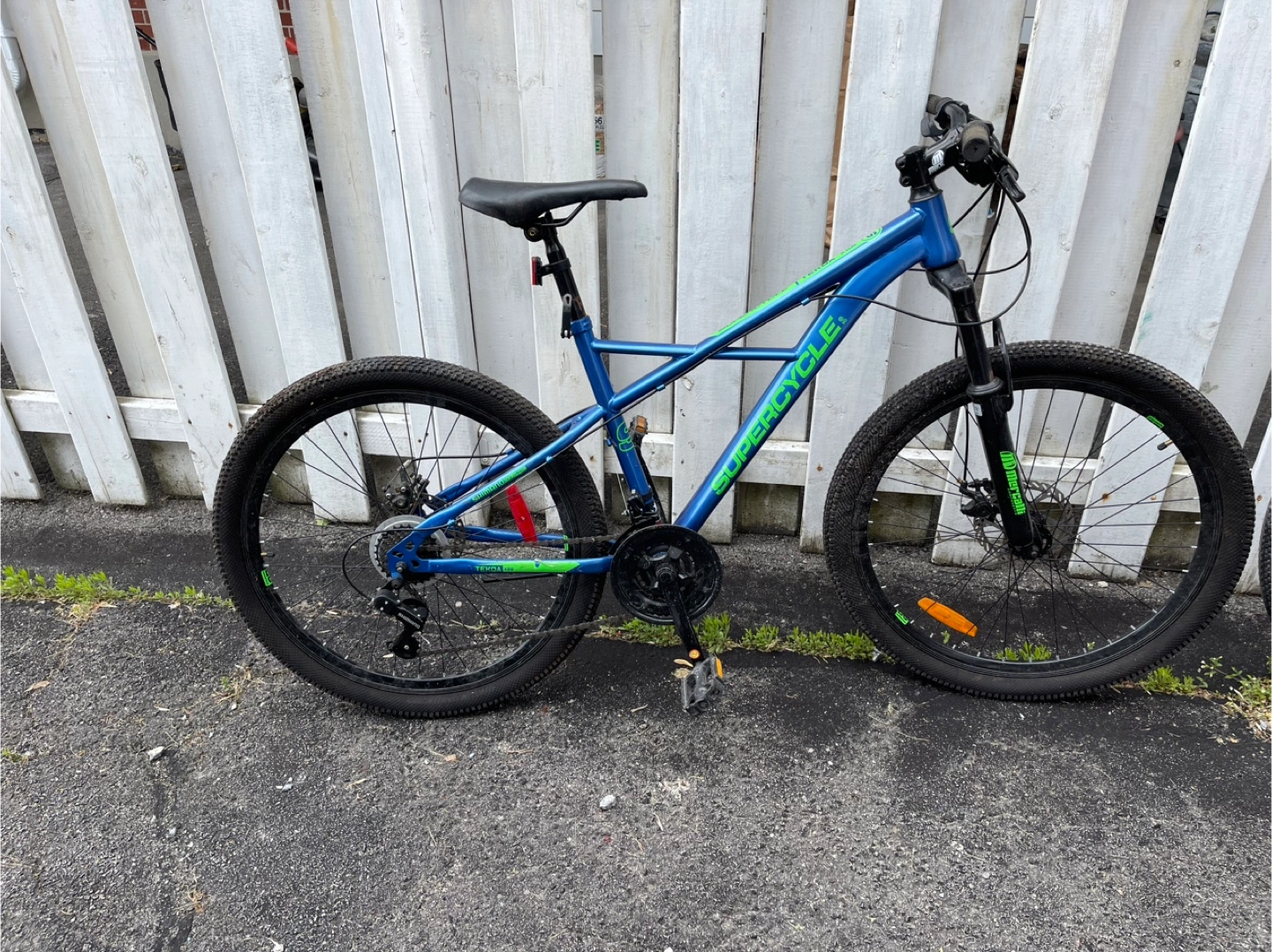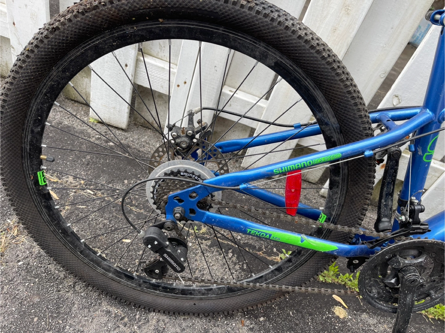 If you like the bike make an offer otherwise it is going to a big sale I am doing. A great bike that would be perfect for relaxing rides. The bike is blue with black tires. Features disc brakes. The bike has a rear derailleur and a chain. It has front suspension. See other listings.