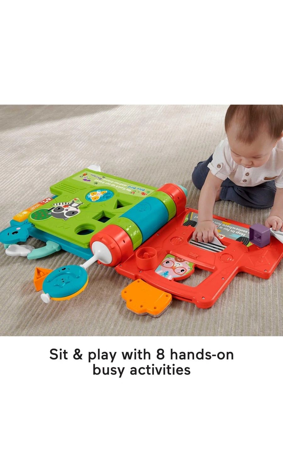 For infants and toddlers ages 6-36 months A colorful activity book with various activities. Has numerous buttons and fun shapes to play with. Great for learning, the activity book is sure to bring peace to any home.