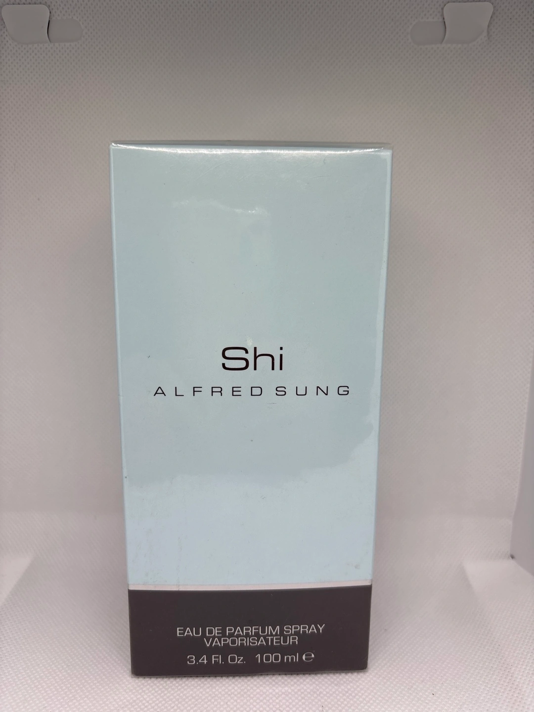 The box is a light blue and has the words "Shi" written on the front. The packaging includes a section of text at the bottom with the words "EAU DE PARFUM SPRAY". It can be used for a night out, so you can smell nice.