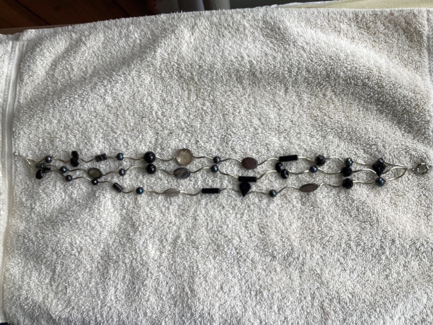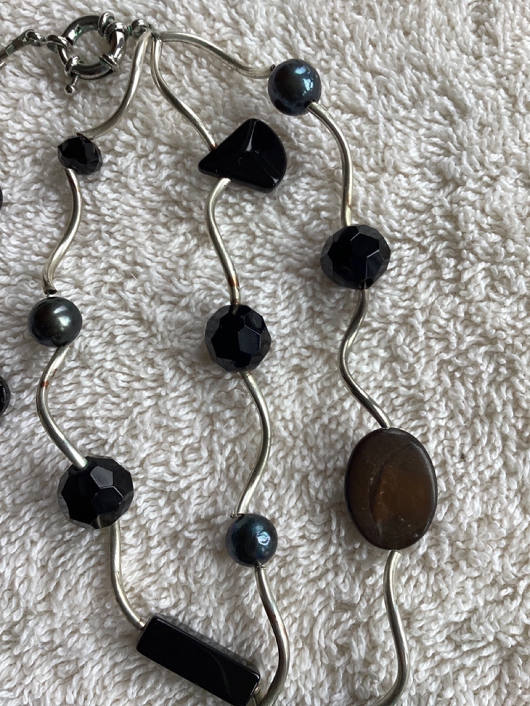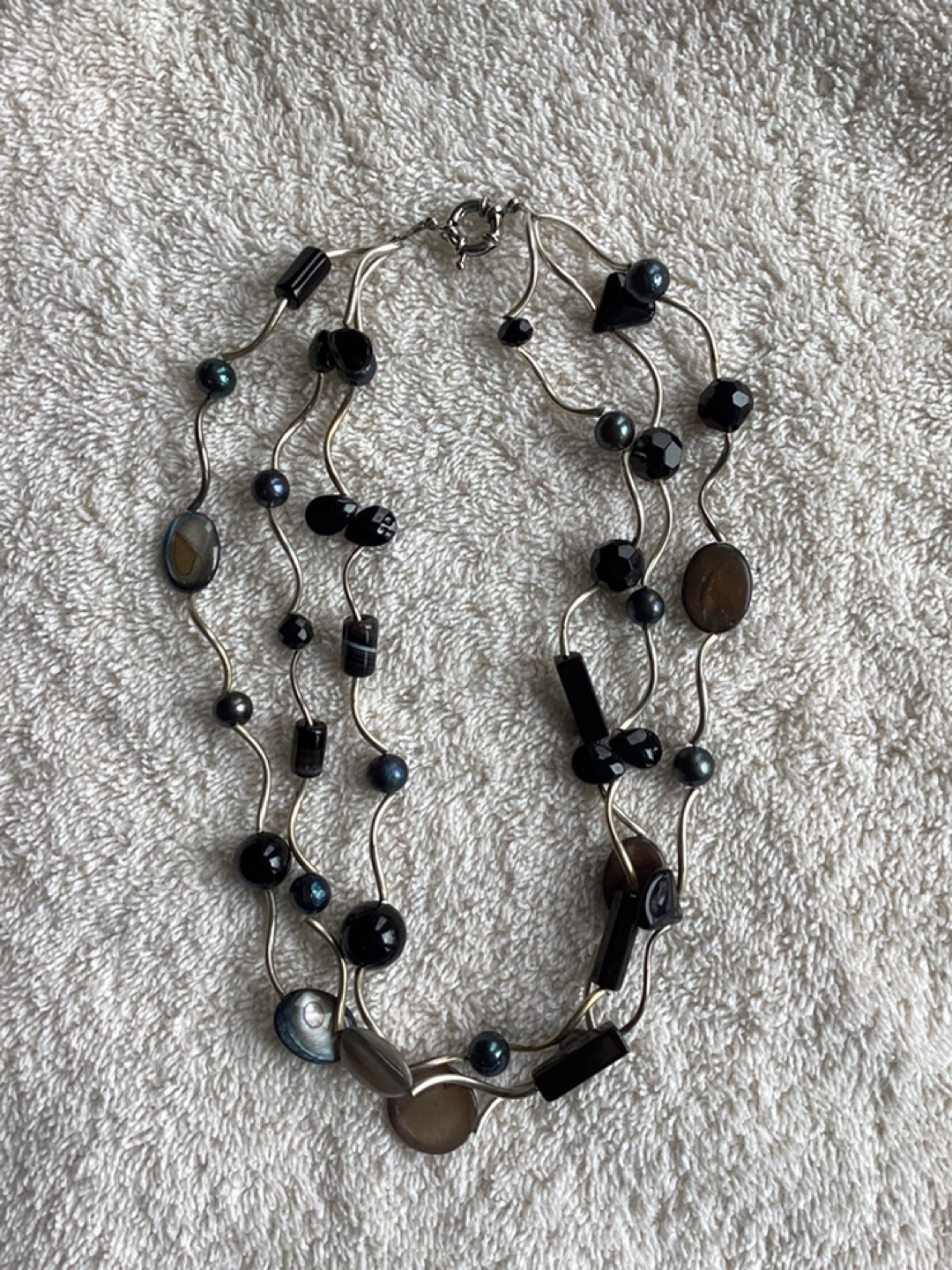 Multi-Colour Necklace, three strand, approximate length 18”, some minor imperfections which are not visible when wearing. $15 or best offer.
