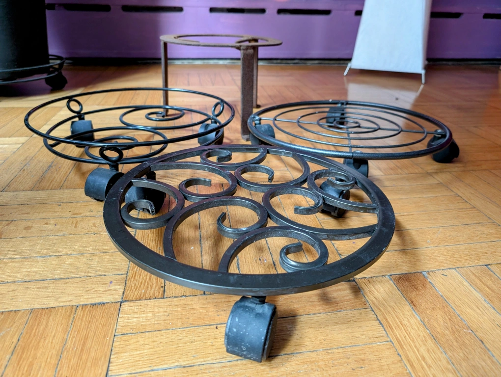 4 Metal Plant Stands 3 with wheels