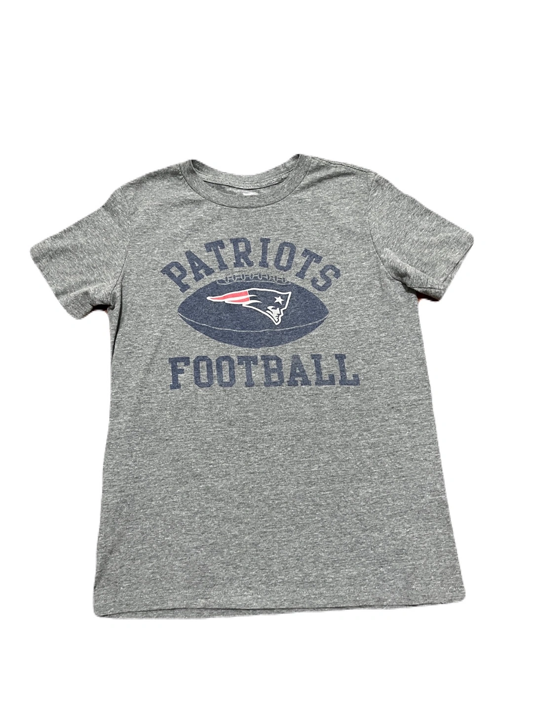 Show off your team spirit with this NFL Team Apparel officially licensed New England Patriots boys t-shirt. Features the iconic Patriots logo and ‘Patriots Football’ graphic on a comfortable heather gray fabric.