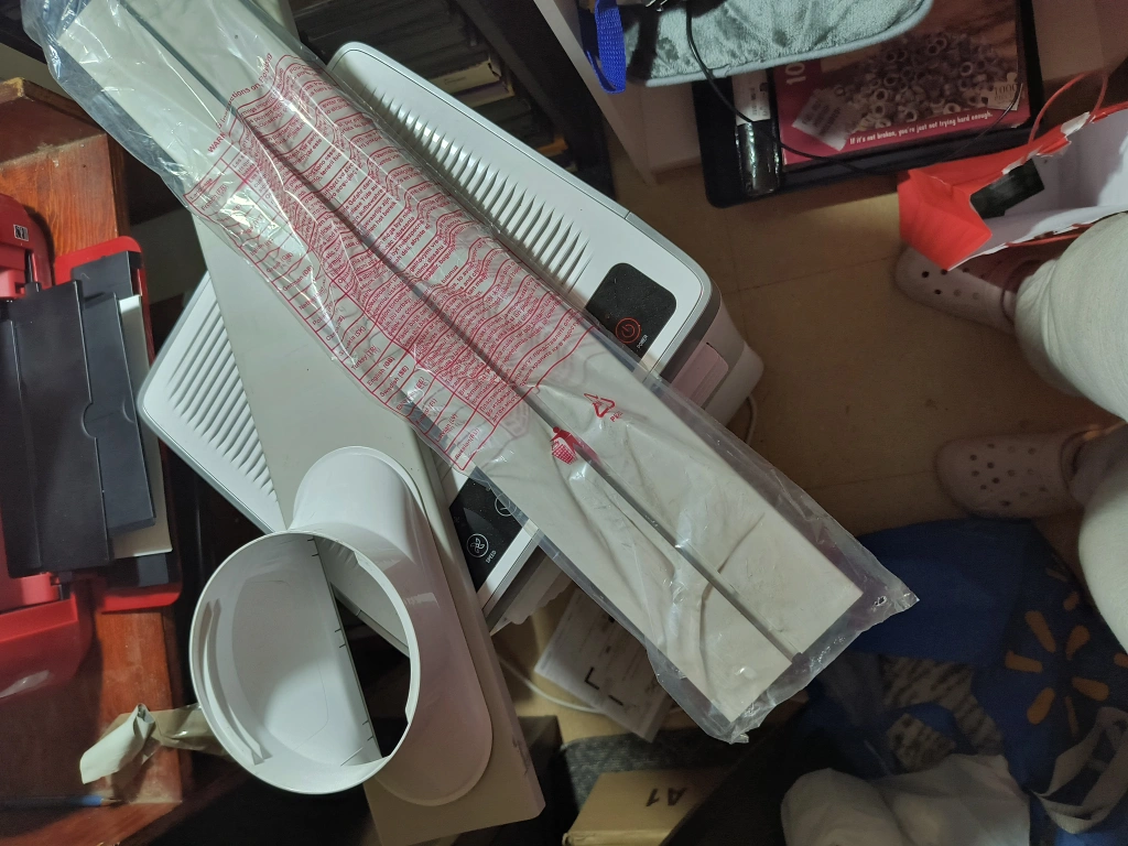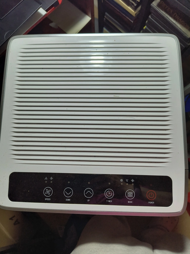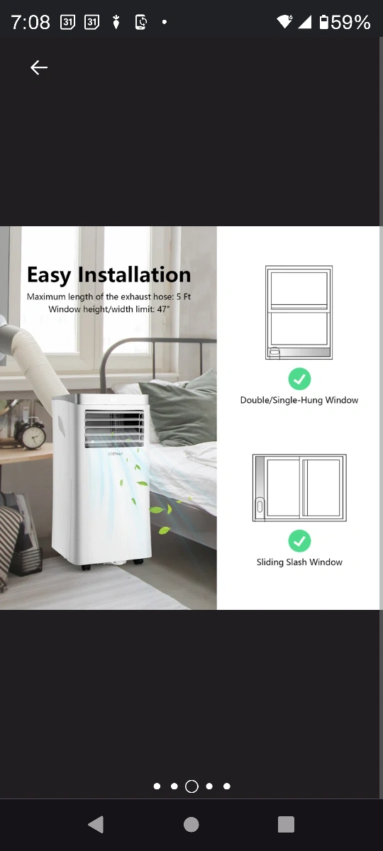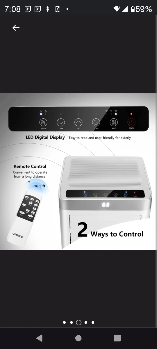3-in-1 portable air conditioner. Cooling, dehumidifying, and ventilating functions. Includes remote, exhaust hose, and window kit. Easy-to-use LED display and control panel. Four smooth-rolling wheels. Sleep mode and timer. has remote as well.