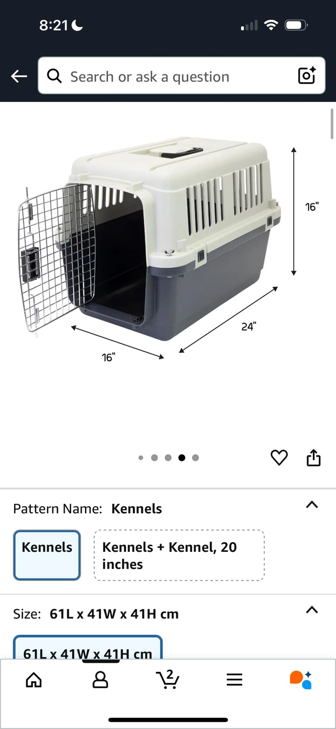 Durable plastic kennel. Features a metal door. Easy to clean and assemble. A great way to transport your furry friend safely.