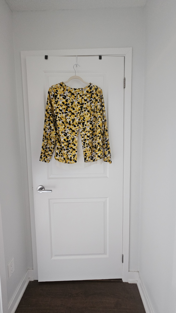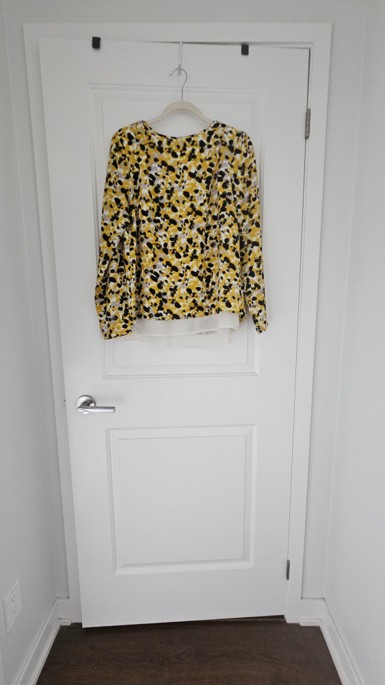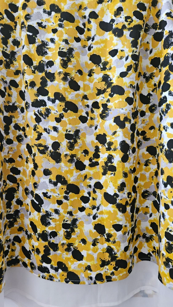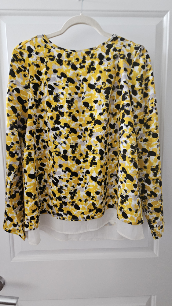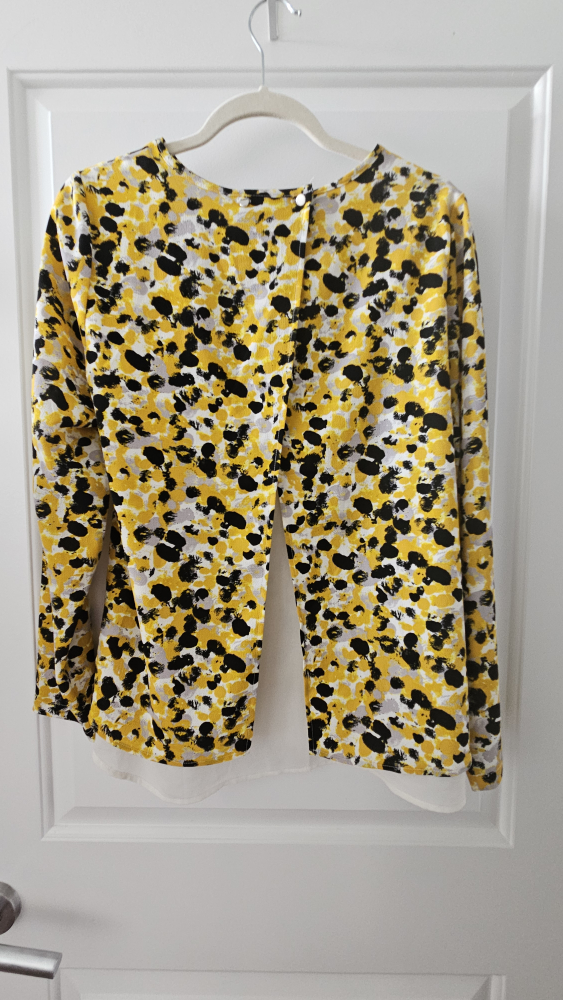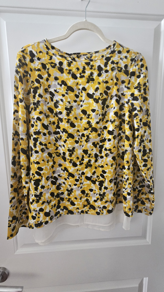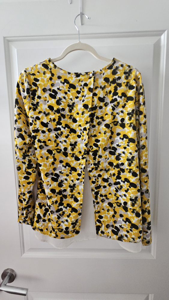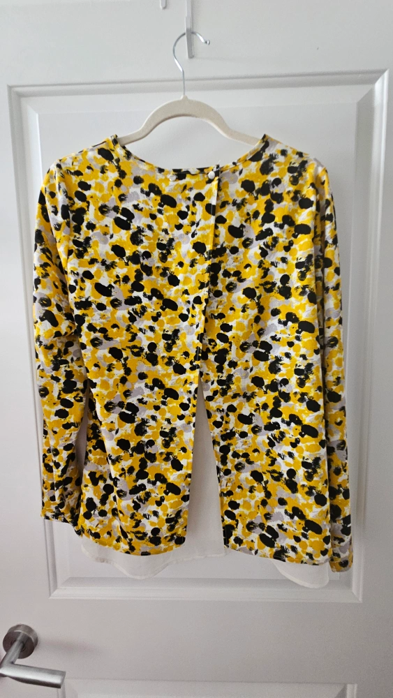 H&M long sleeve top with a floral print, black, yellow and white. Features a split back and a layered, sheer bottom. A lovely addition to any wardrobe. A great summer wear for both leisure and work.