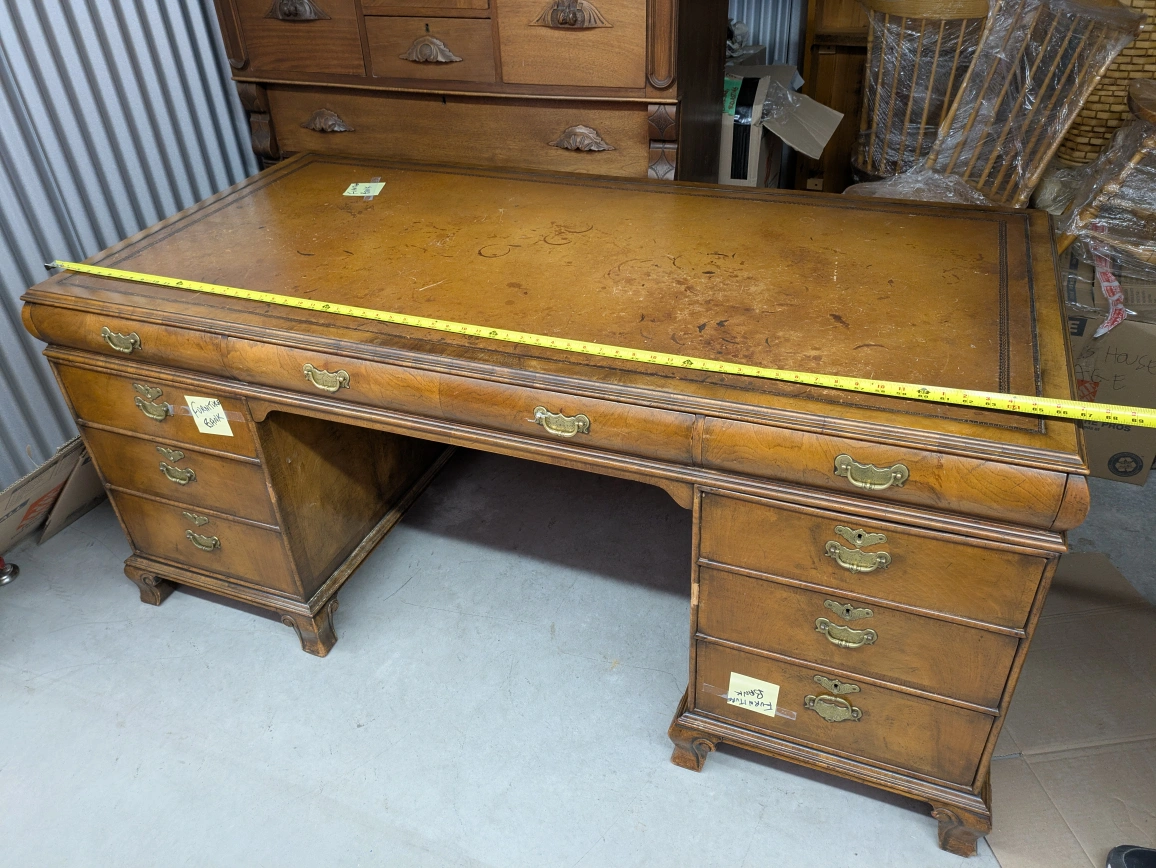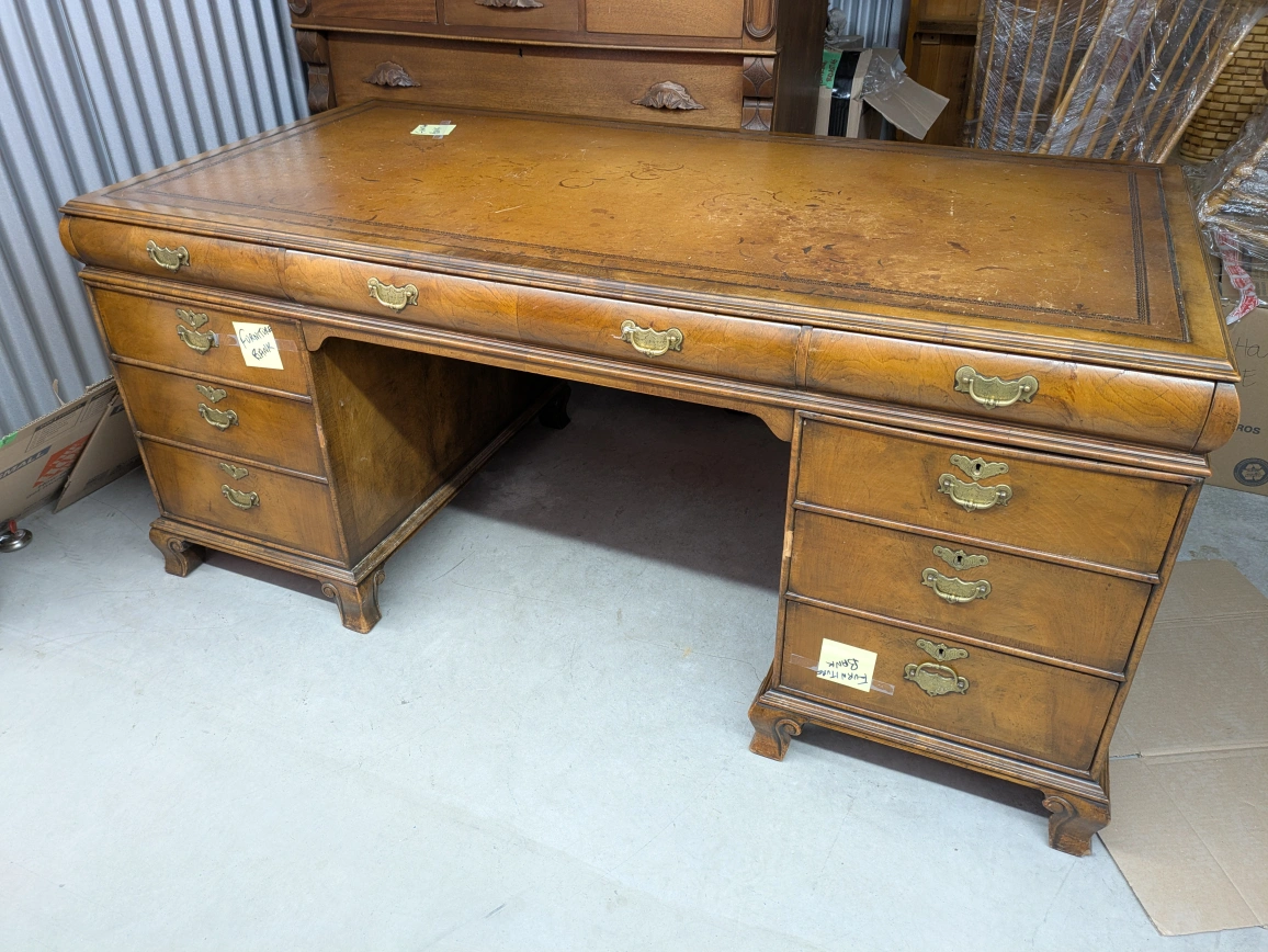 Antique desk and chair from England. brought over when relocated here in 1980. A beautiful executive chair, perfect for your home office, along with a matching desk that would make anyone feel professional.