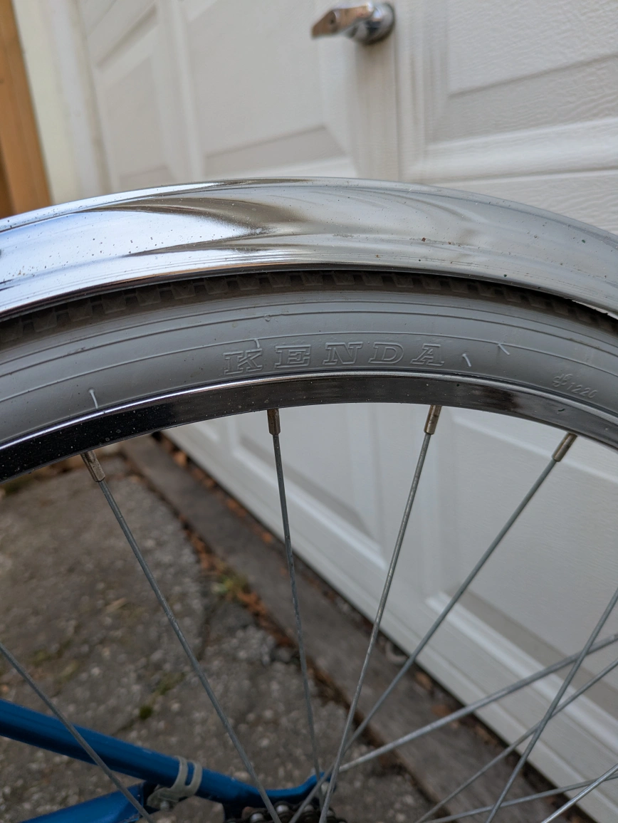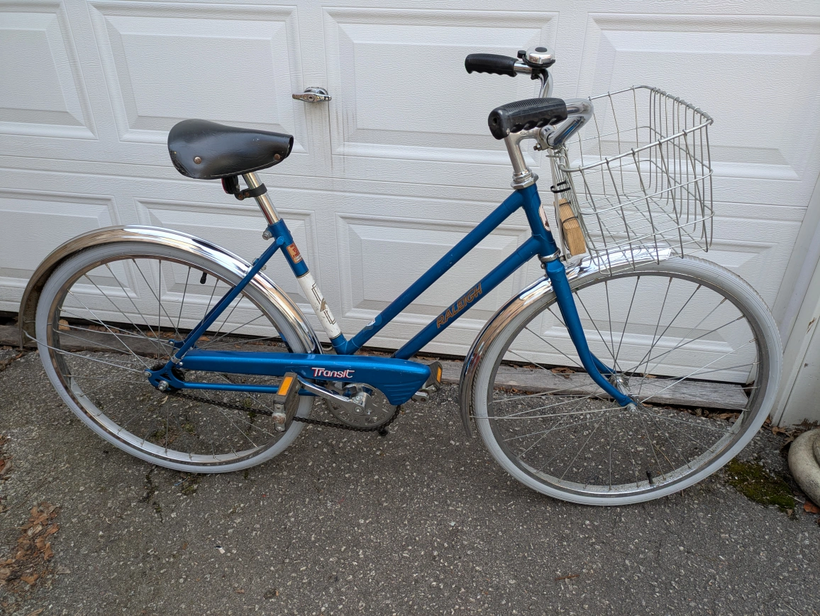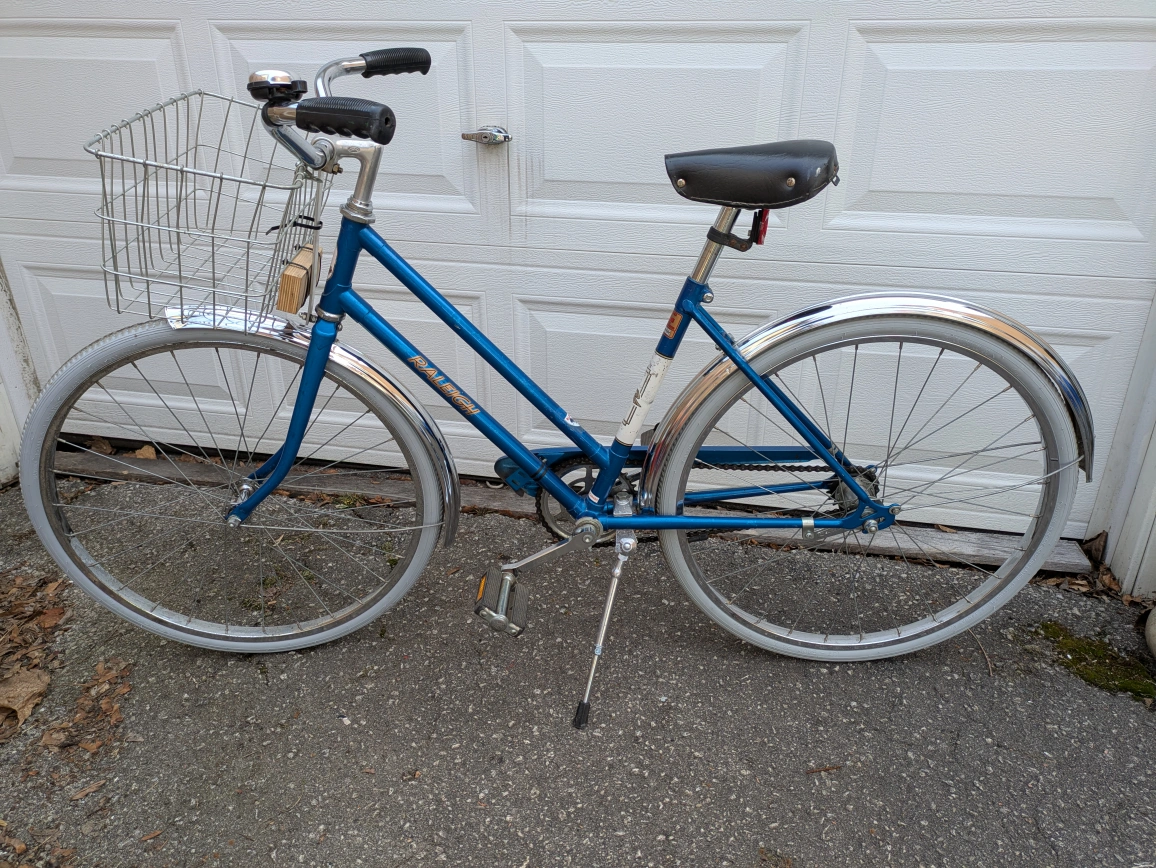 Classic single speed bicycle. wheel bearings serviced, new tires and tubes, basket, bell, and new kickstand. this was a covid rebuild and I take it to the motor cycle race track when I am go as a pit bike, but I'd like to see it used more.