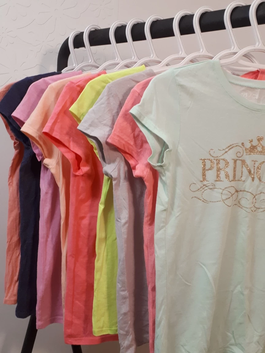 A colourful selection of girls' t-shirts.